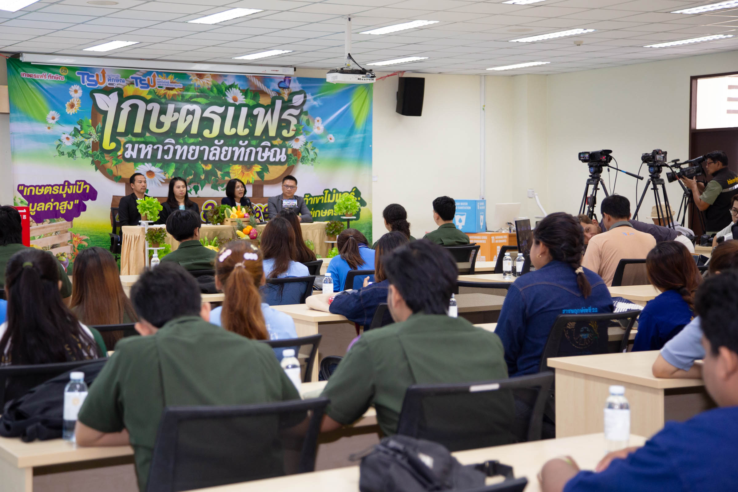 วันที่ 3 กรกฎาคม 2568 ผศ.ดร.อุไรวรรณ ทองแกมแก้ว คณบดีคณะเทคโนโลยีและการพัฒนาชุมชน มหาวิทยาลัยทักษิณ พร้อมด้วยรองคณบดี ได้ร่วมแถลงข่าวการจัดงาน “เกษตรแฟร์ ครั้งที่ 19” ซึ่งเป็นงานประเพณีที่จัดขึ้นเป็นประจำทุกปีของมหาวิทยาลัยทักษิณ ณ ห้องประชุมTCD 209 คณะเทคโนโลยีและการพัฒนาชุมชน มหาวิทยาลัยทักษิณ วิทยาเขตพัทลุง