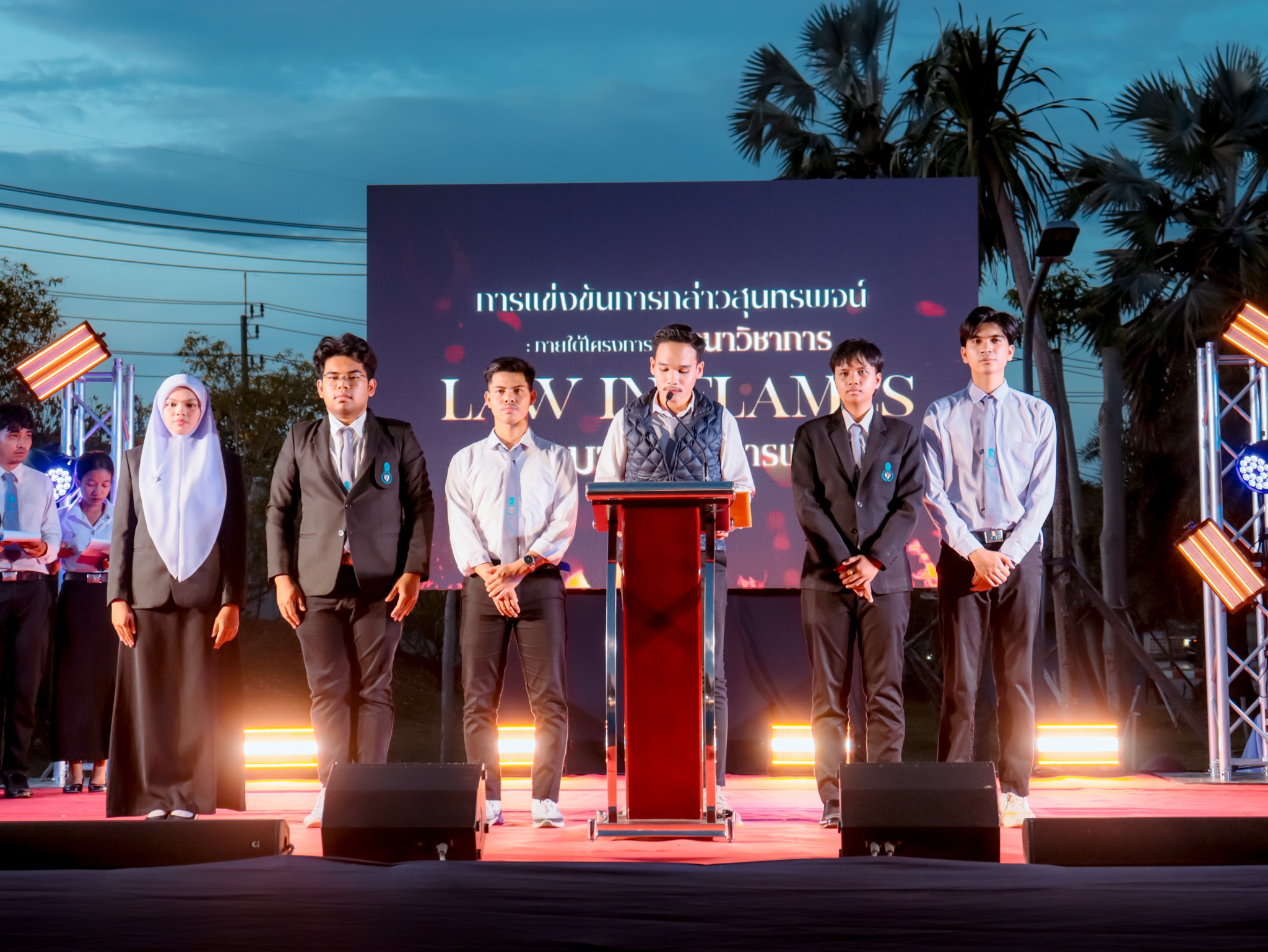 สโมสรนิสิตคณะนิติศาสตร์ มหาวิทยาลัยทักษิณ วิทยาเขตสงขลา จัดงาน LAW IN FLAMES กฎหมายในเพลิงการเมือง ณ ลานแอโรบิค มหาวิทยาลัยทักษิณ วิทยาเขตสงขลา เพื่อเปิดพื้นที่แลกเปลี่ยนความรู้ และความคิดเห็นอย่างสร้างสรรค์