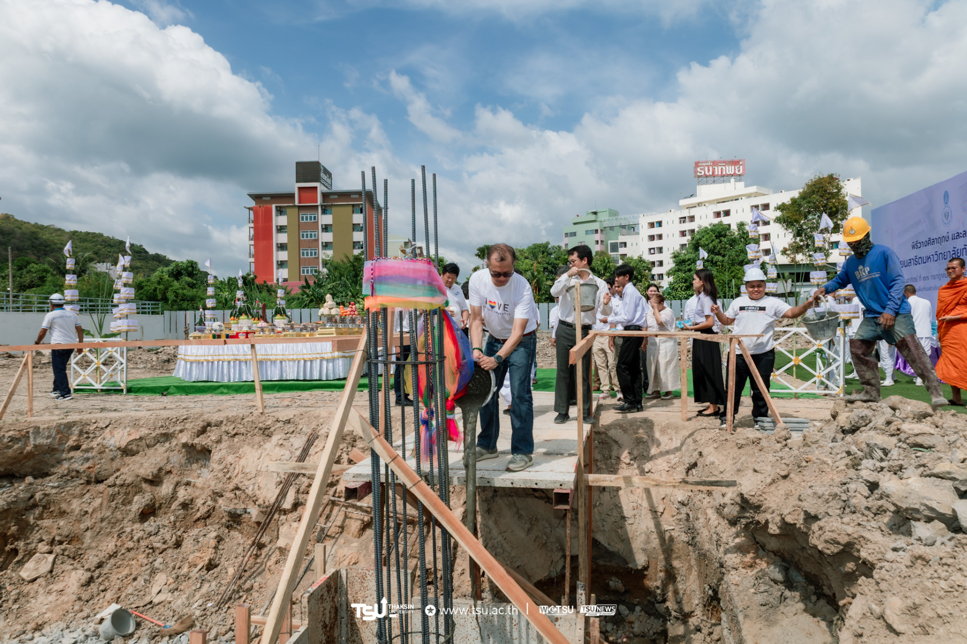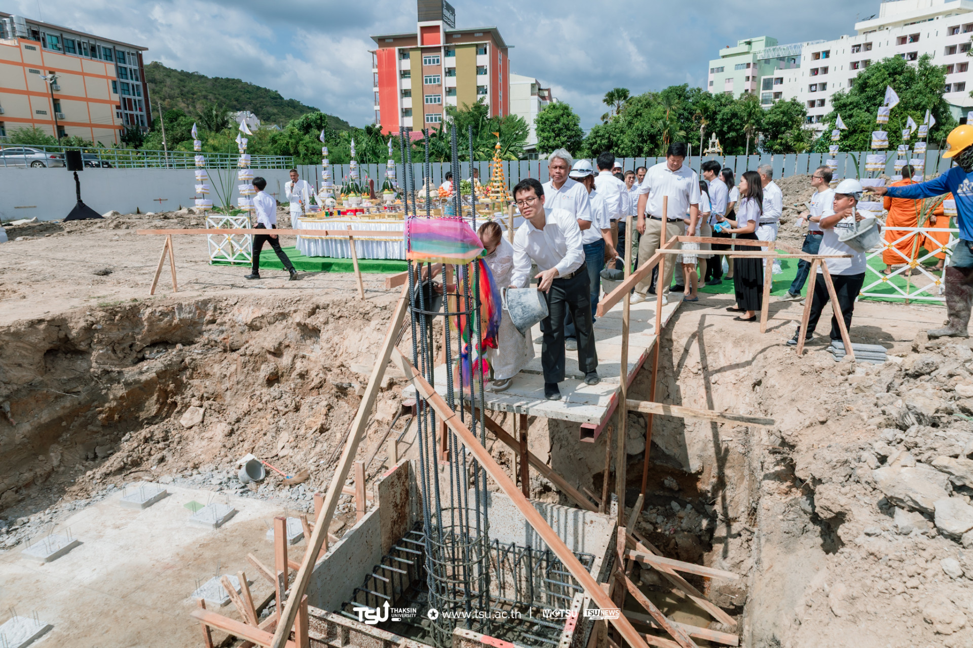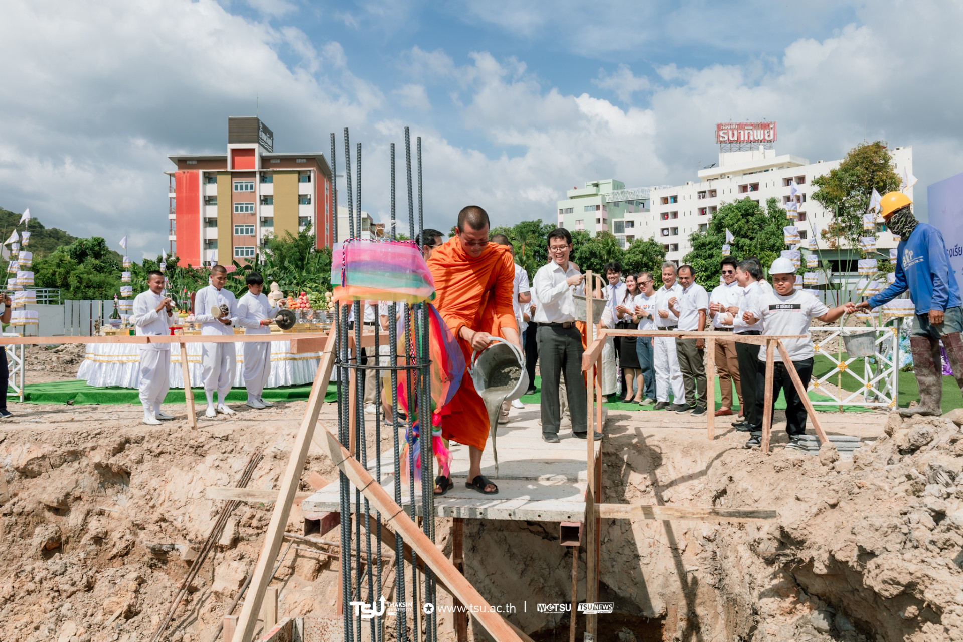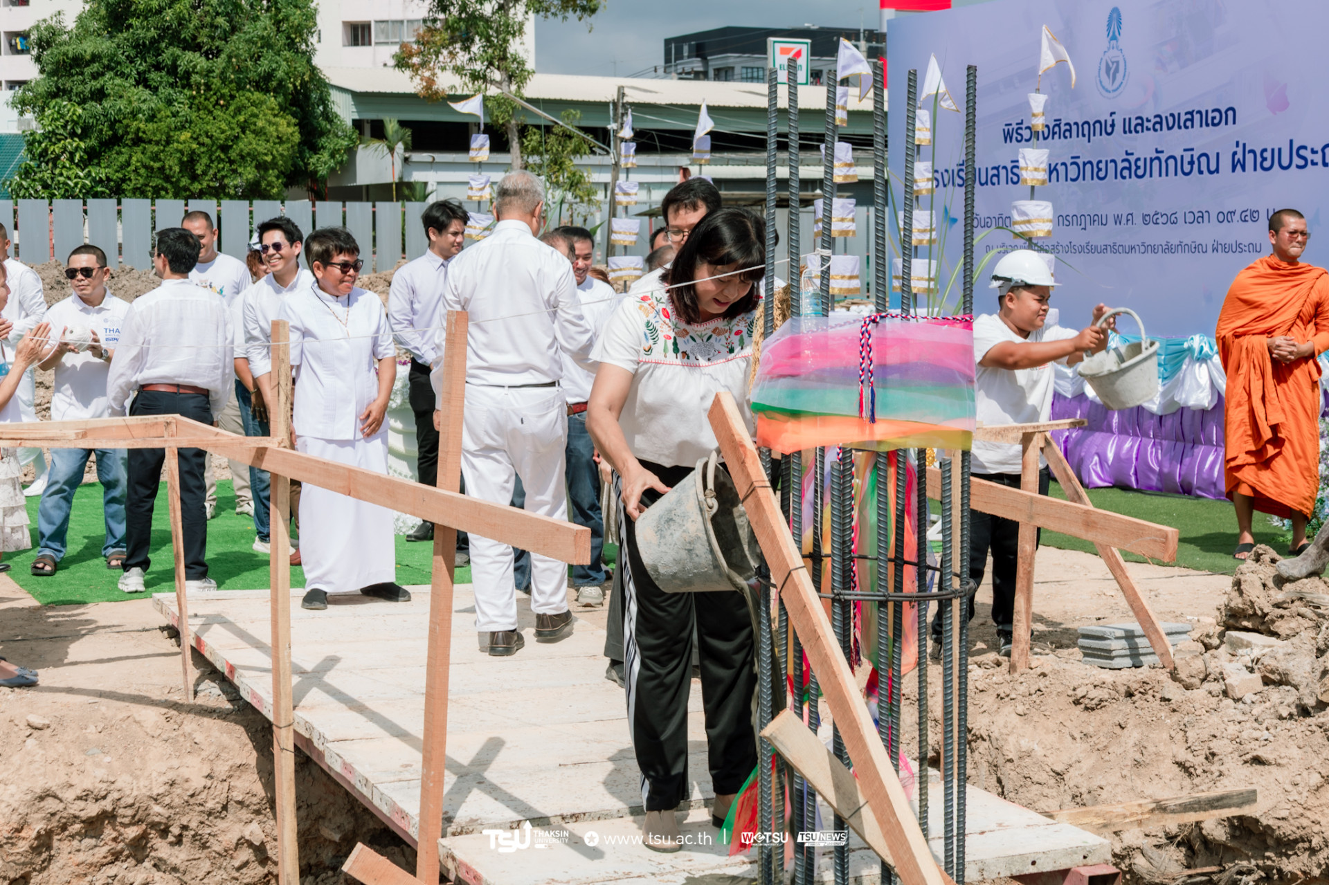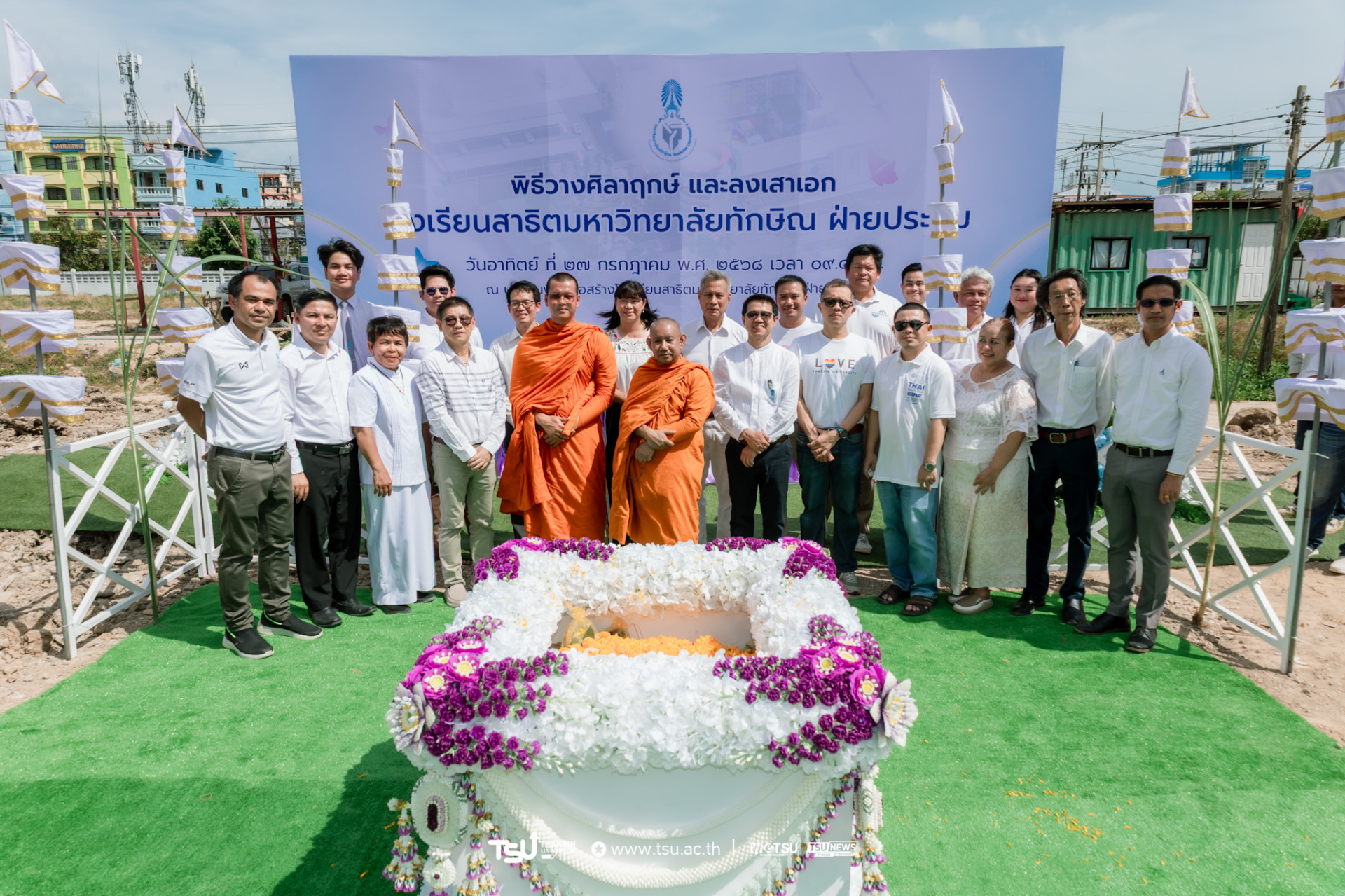โรงเรียนสาธิตมหาวิทยาลัยทักษิณ ฝ่ายประถม จัดพิธีวางศิลาฤกษ์และลงเสาเอก เพื่อความเป็นสิริมงคลมงคลในการก่อสร้าง
