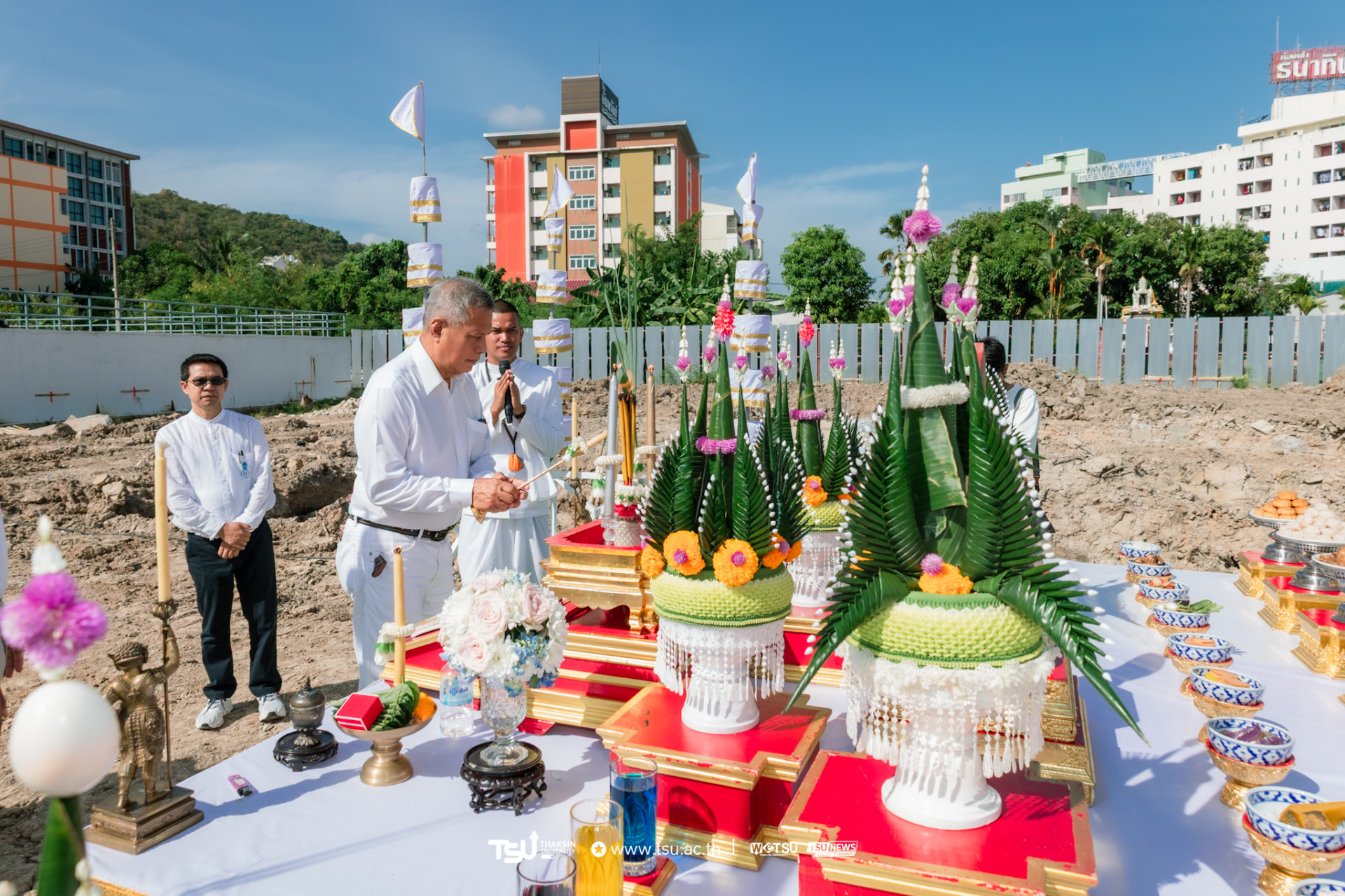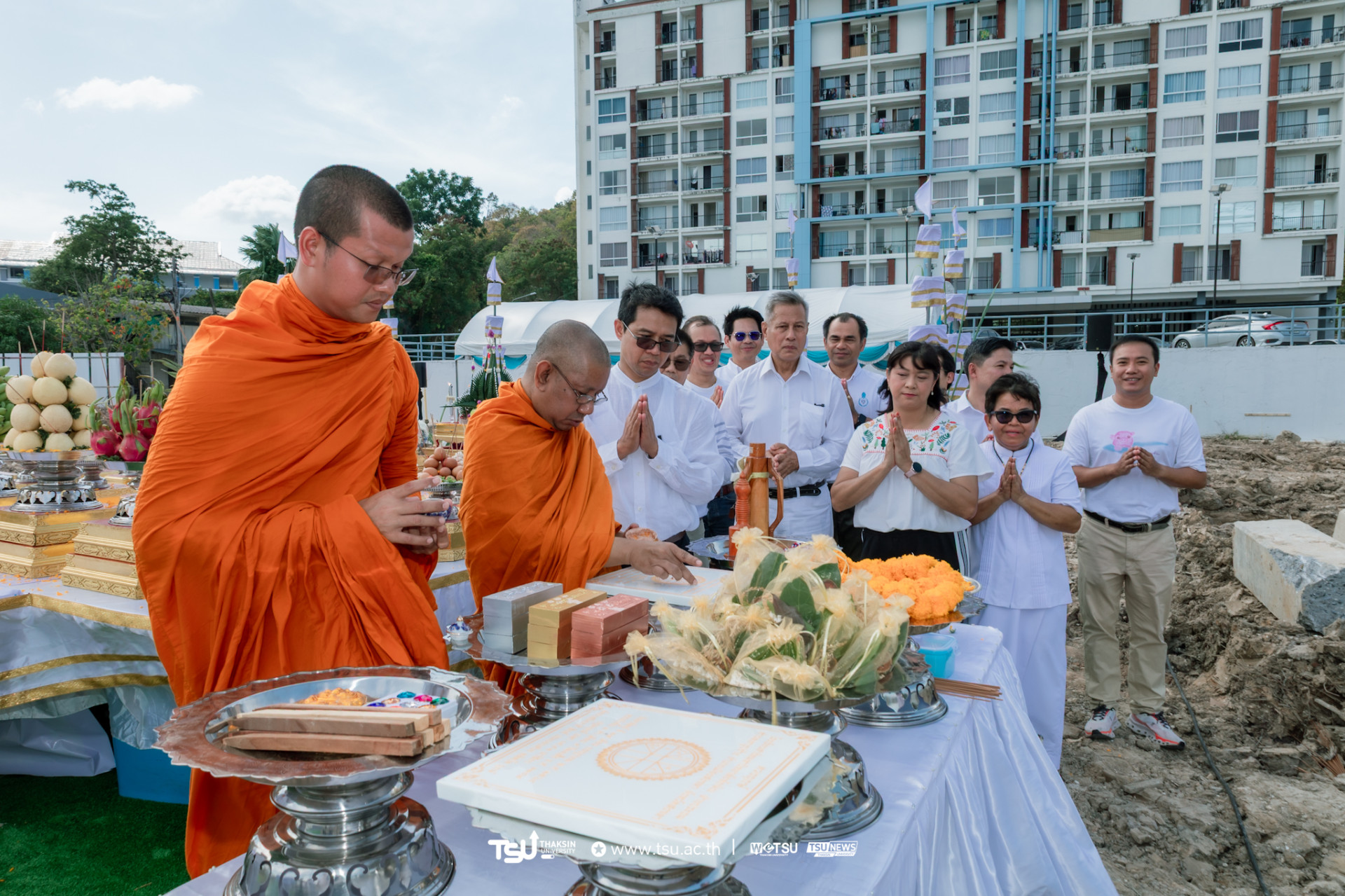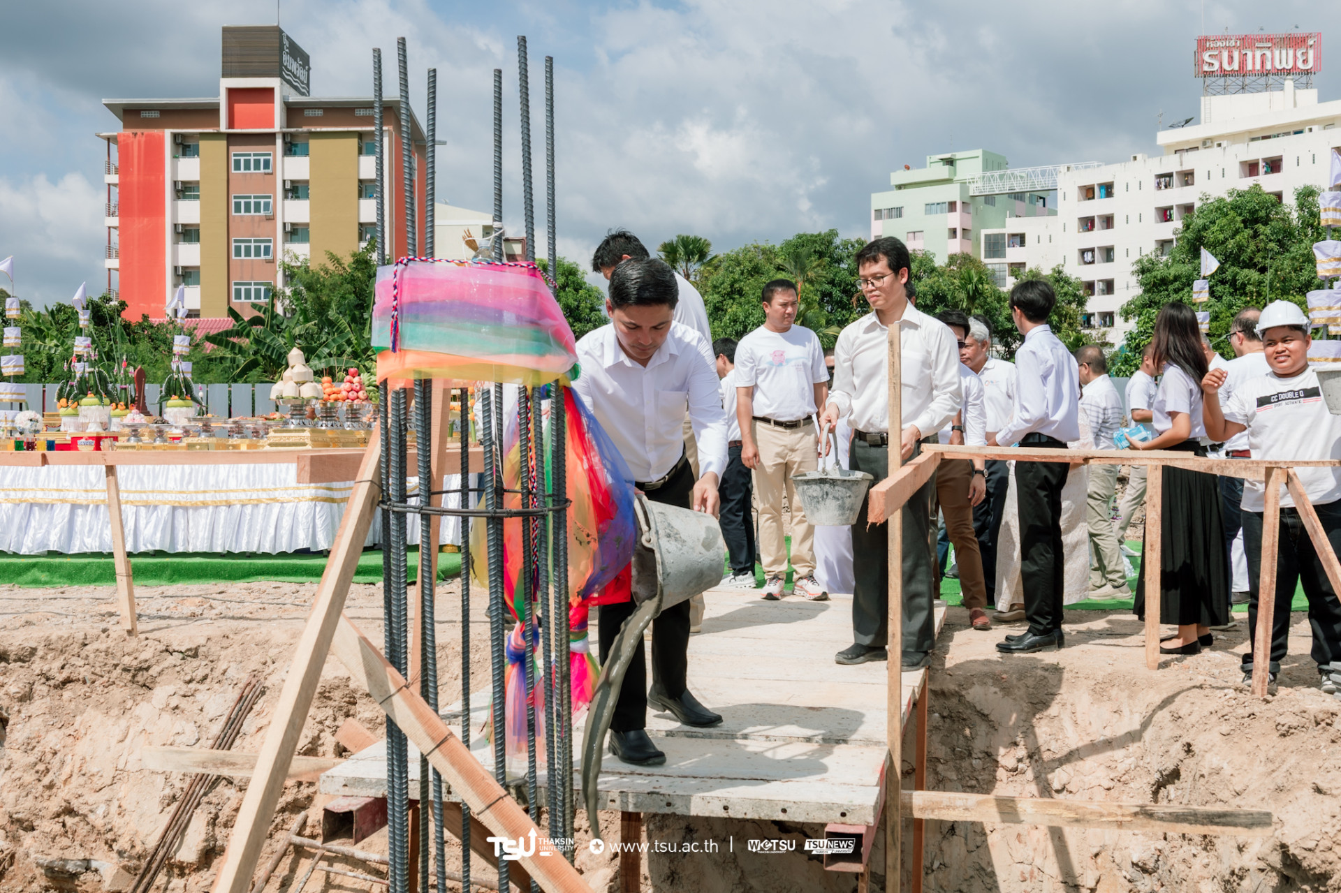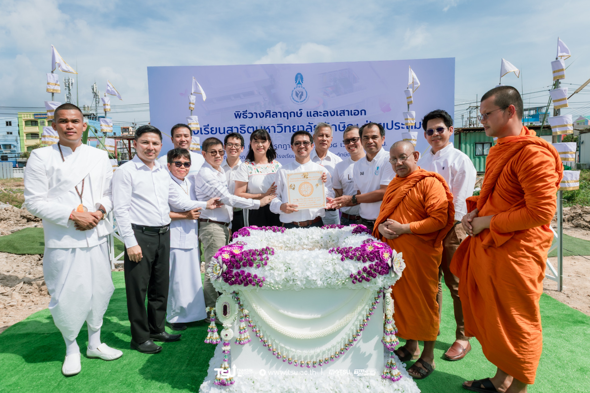 โรงเรียนสาธิตมหาวิทยาลัยทักษิณ ฝ่ายประถม จัดพิธีวางศิลาฤกษ์และลงเสาเอก เพื่อความเป็นสิริมงคลมงคลในการก่อสร้าง