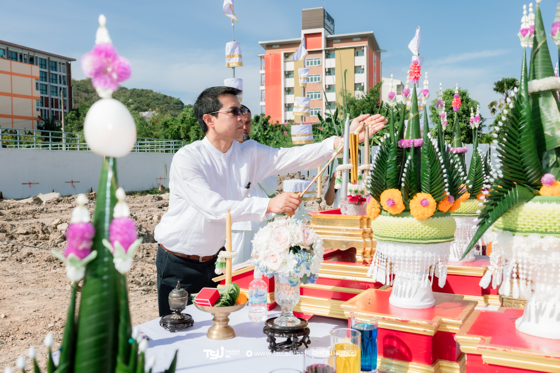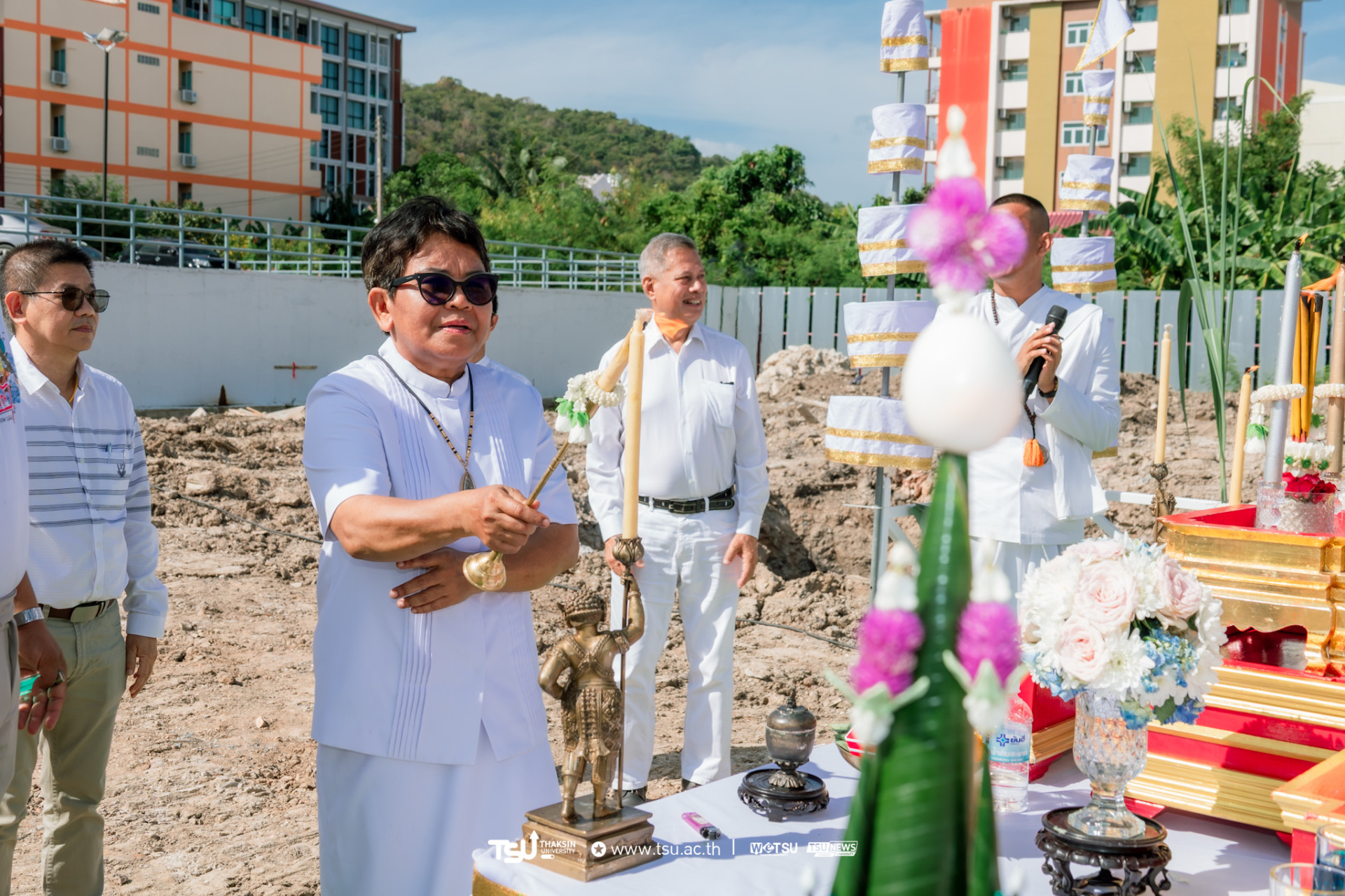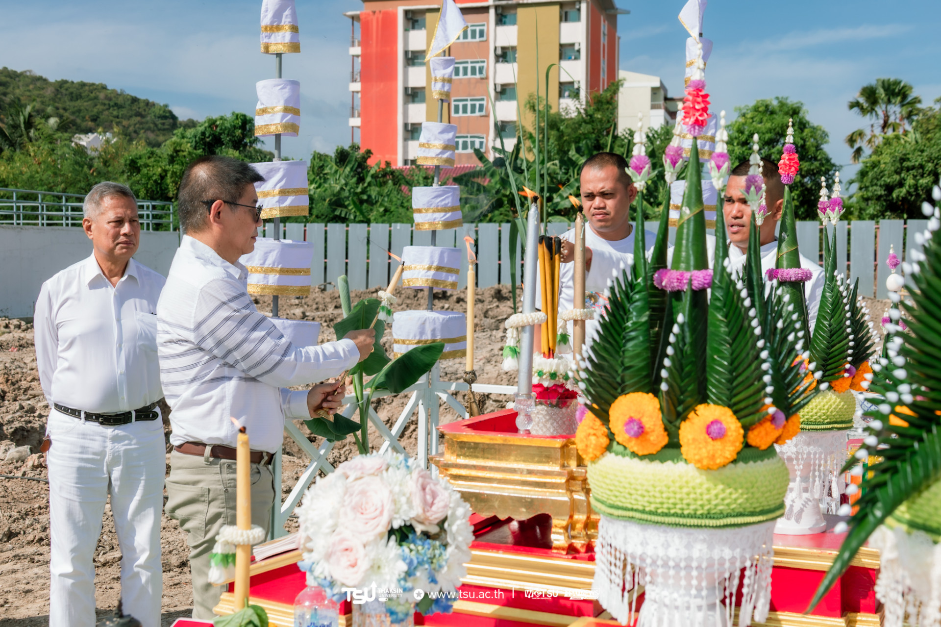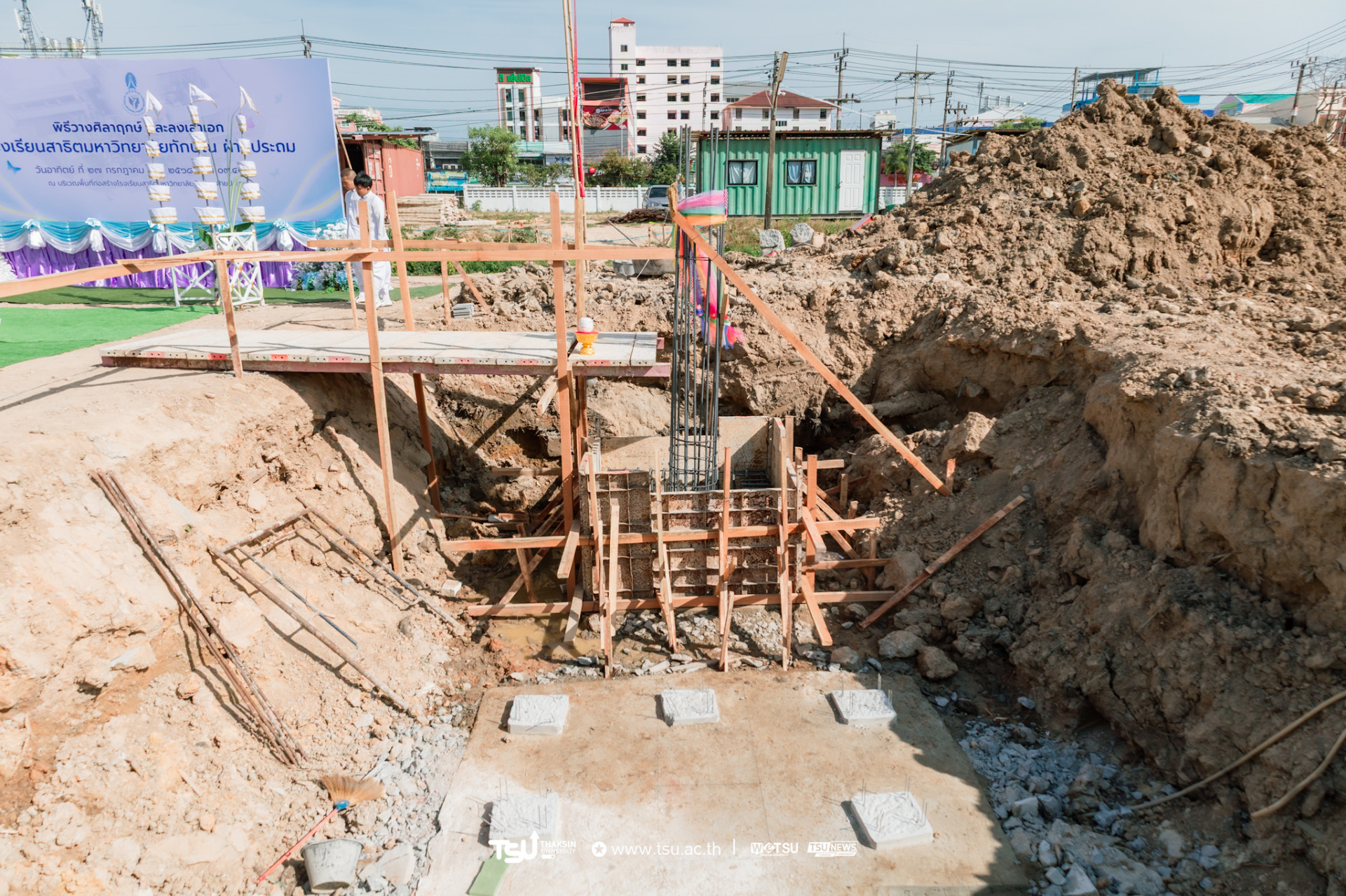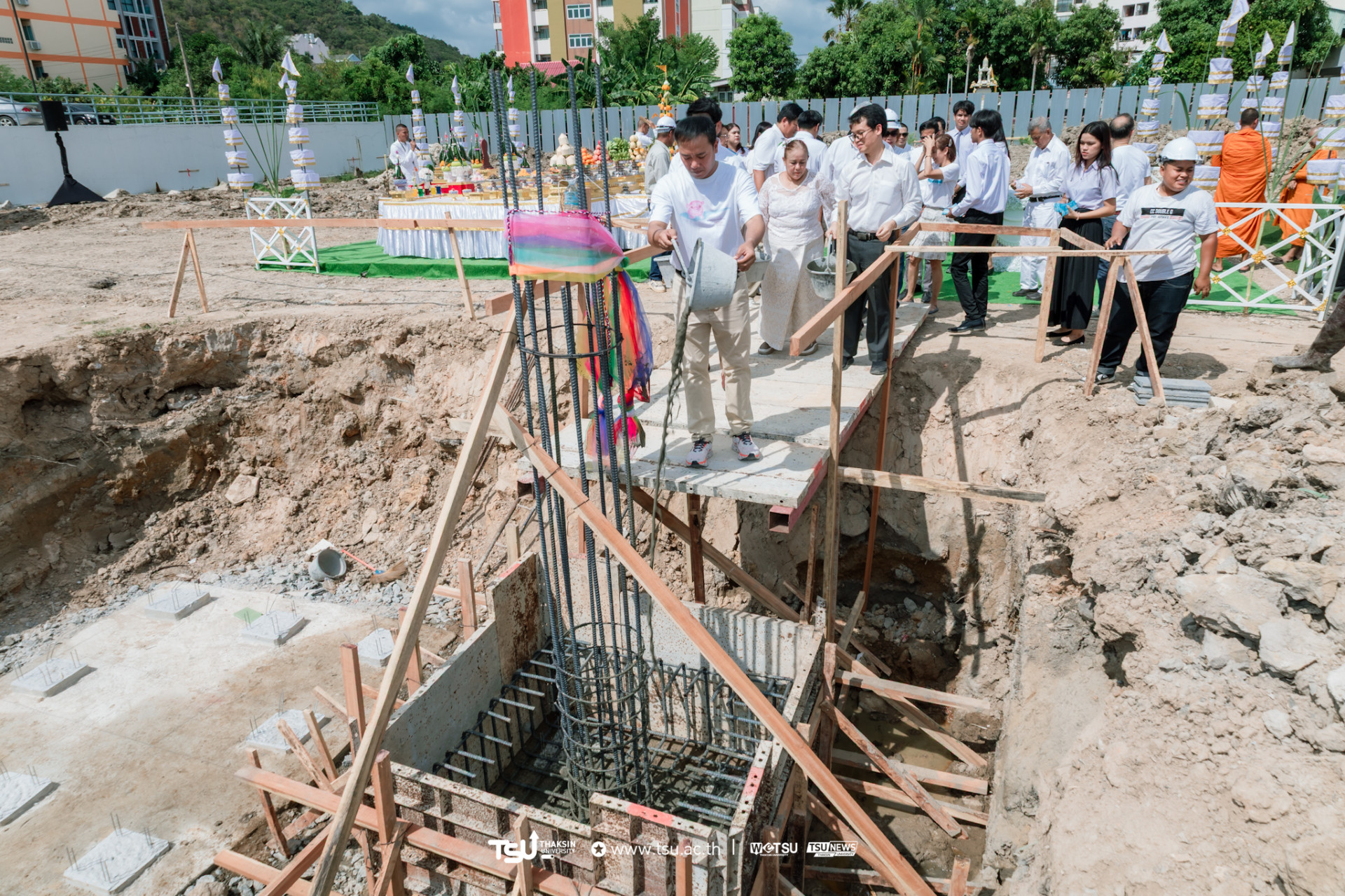 โรงเรียนสาธิตมหาวิทยาลัยทักษิณ ฝ่ายประถม จัดพิธีวางศิลาฤกษ์และลงเสาเอก เพื่อความเป็นสิริมงคลมงคลในการก่อสร้าง