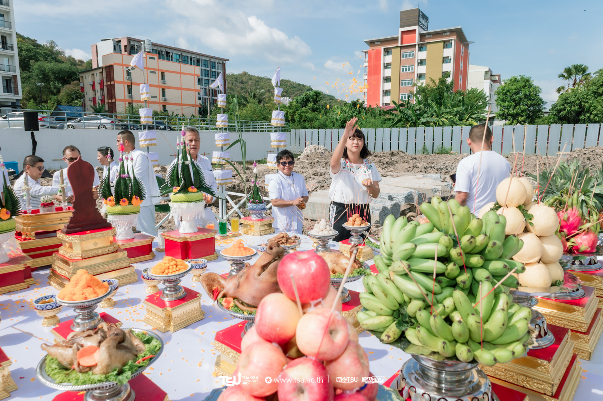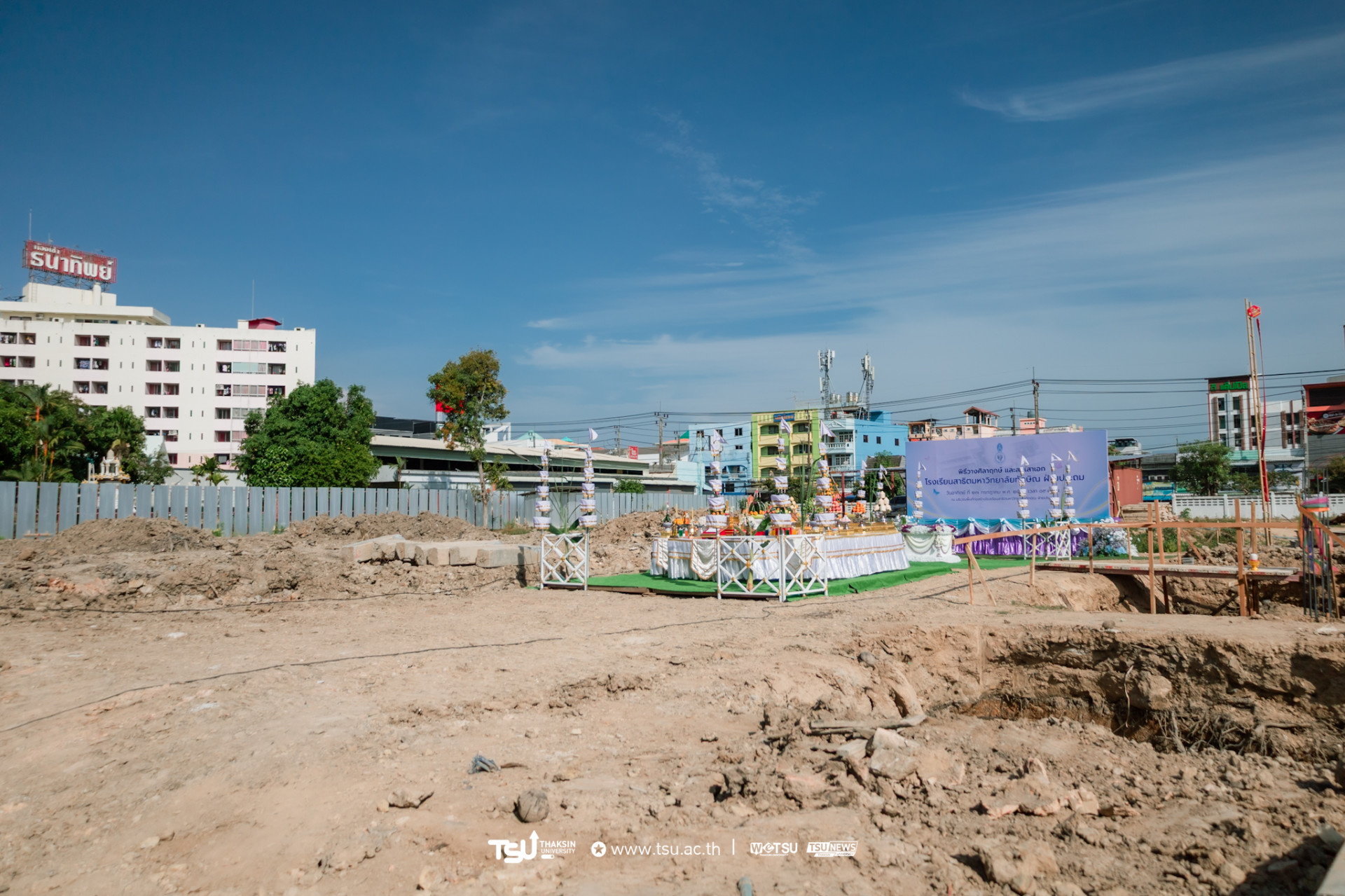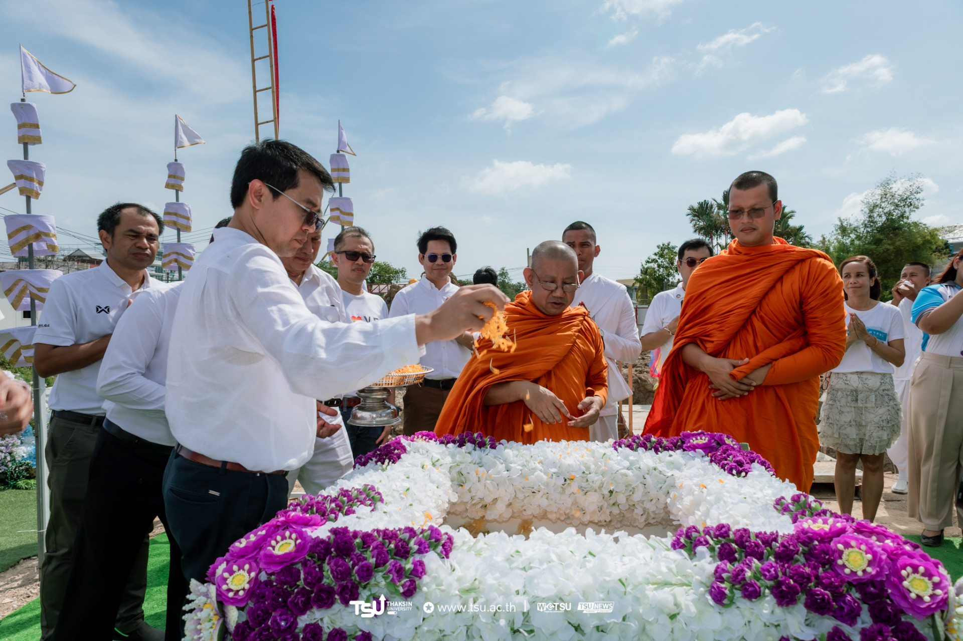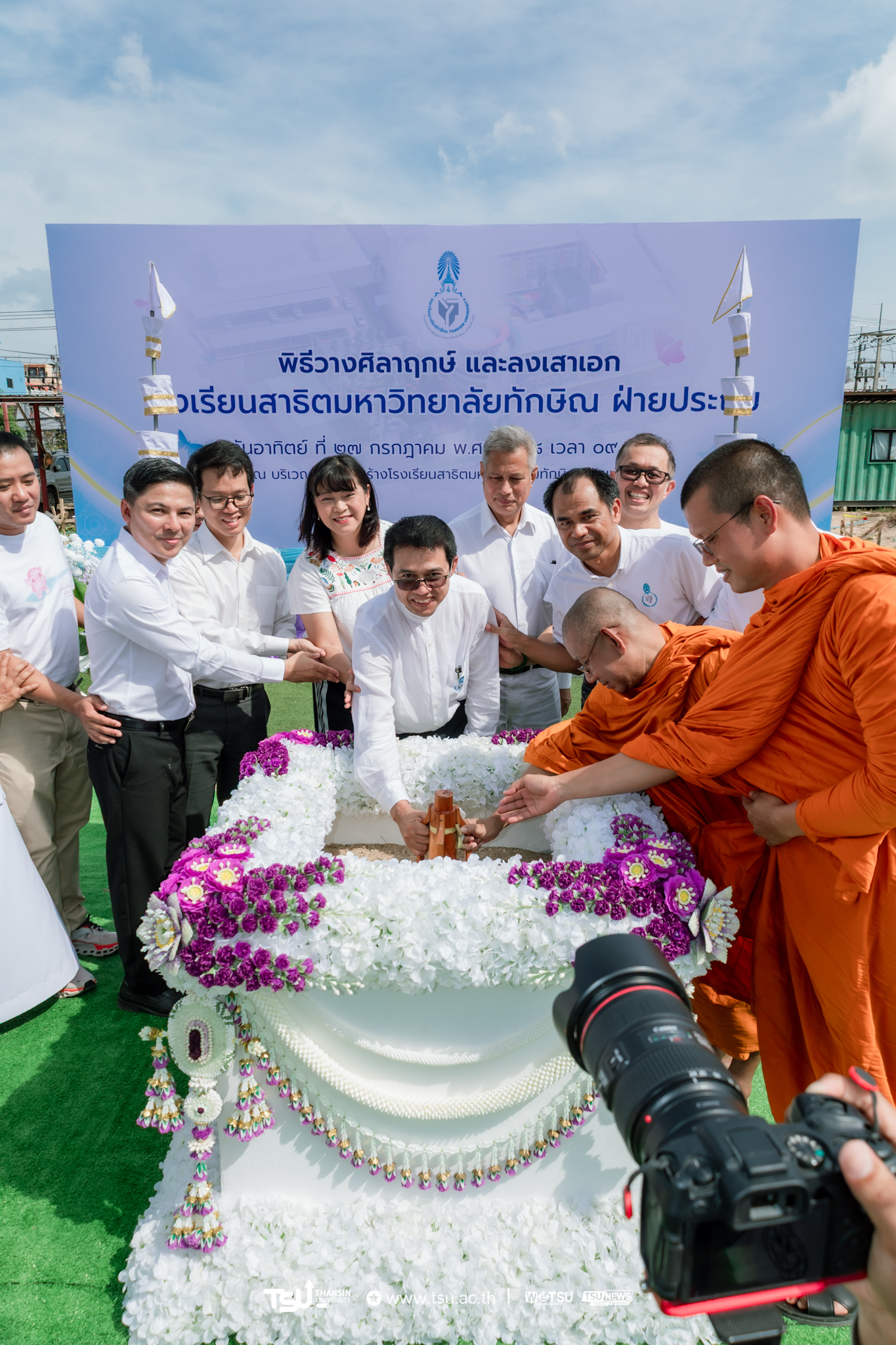 โรงเรียนสาธิตมหาวิทยาลัยทักษิณ ฝ่ายประถม จัดพิธีวางศิลาฤกษ์และลงเสาเอก เพื่อความเป็นสิริมงคลมงคลในการก่อสร้าง