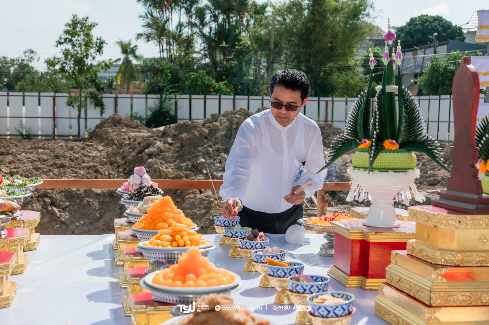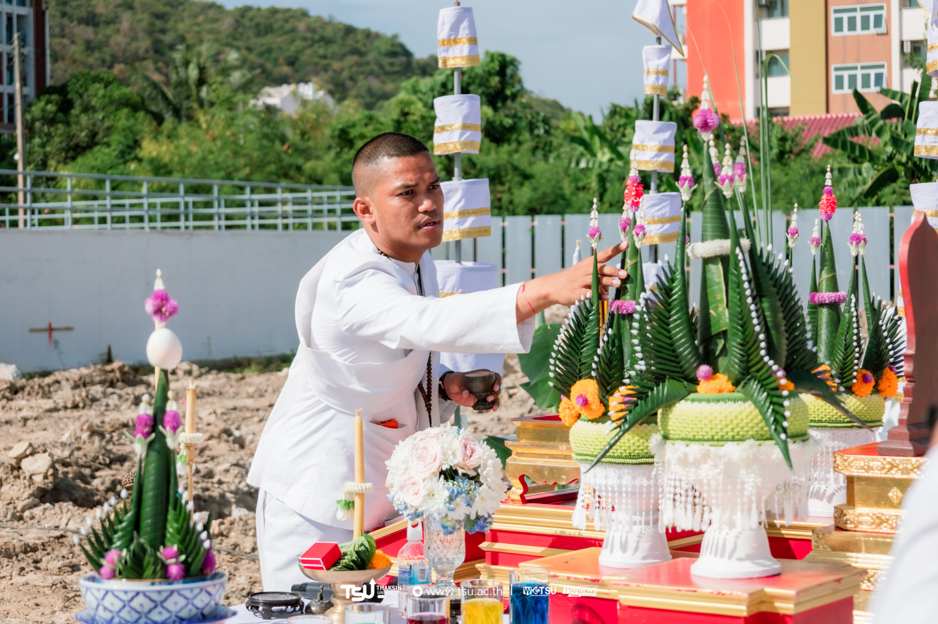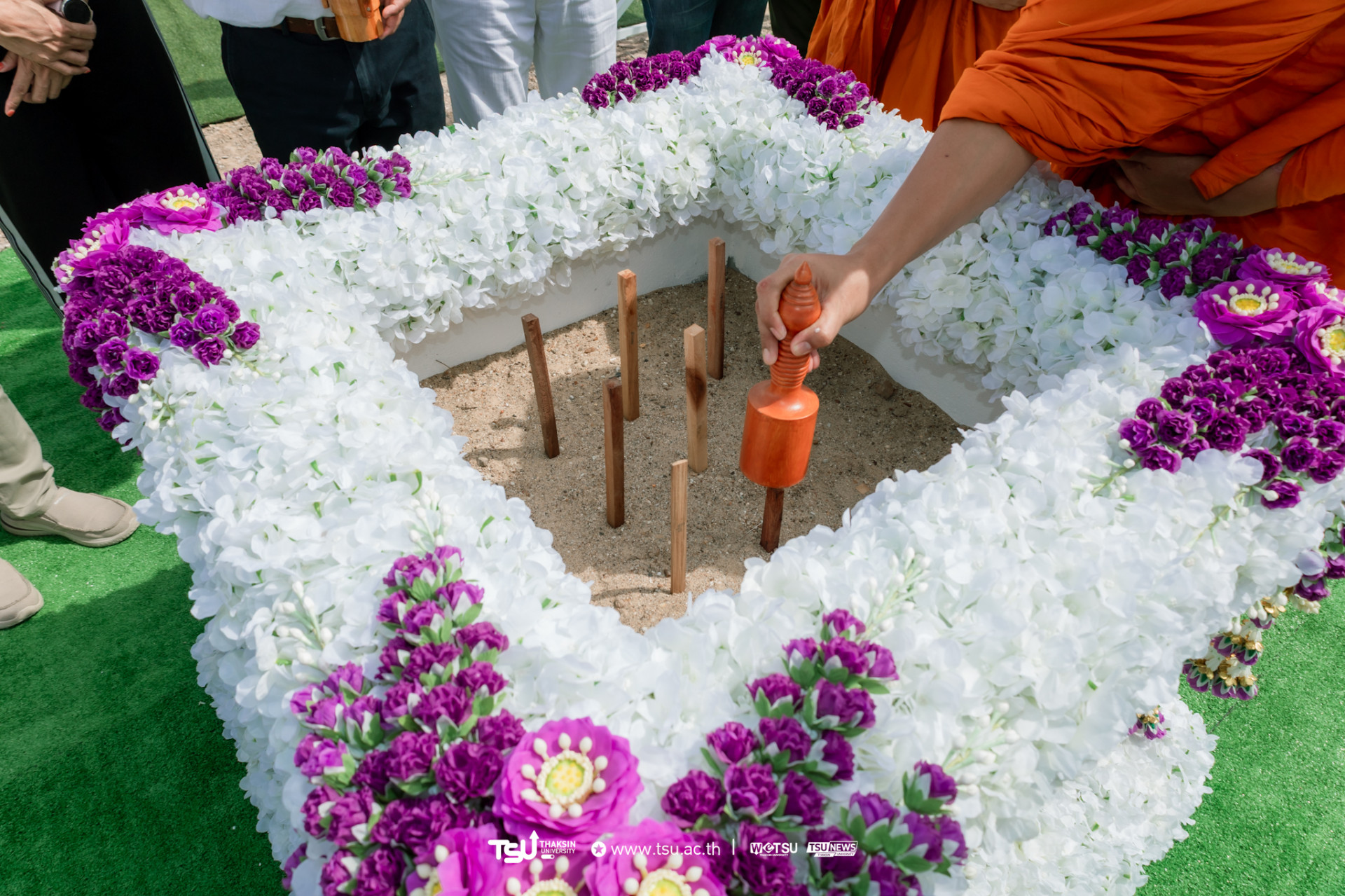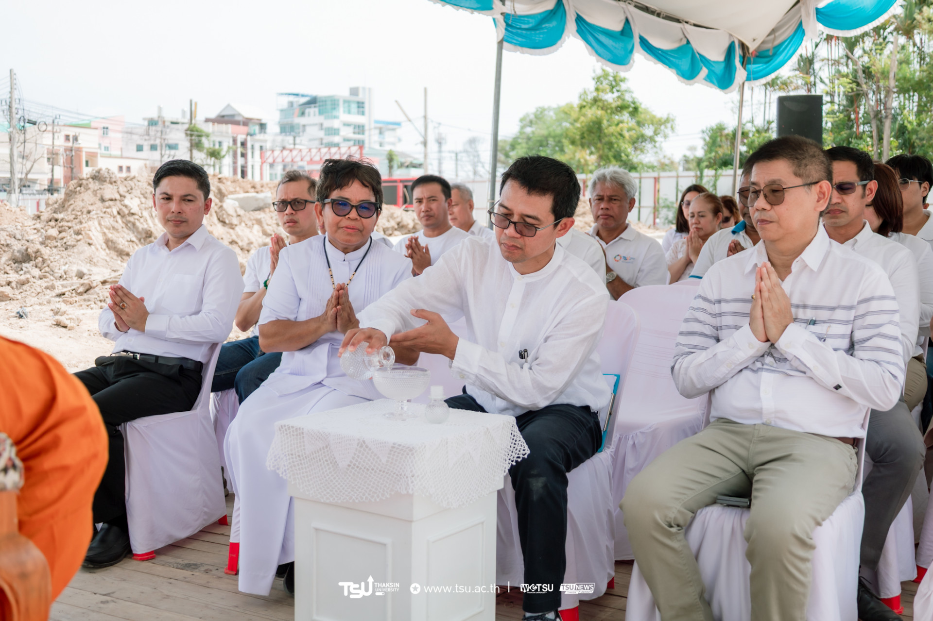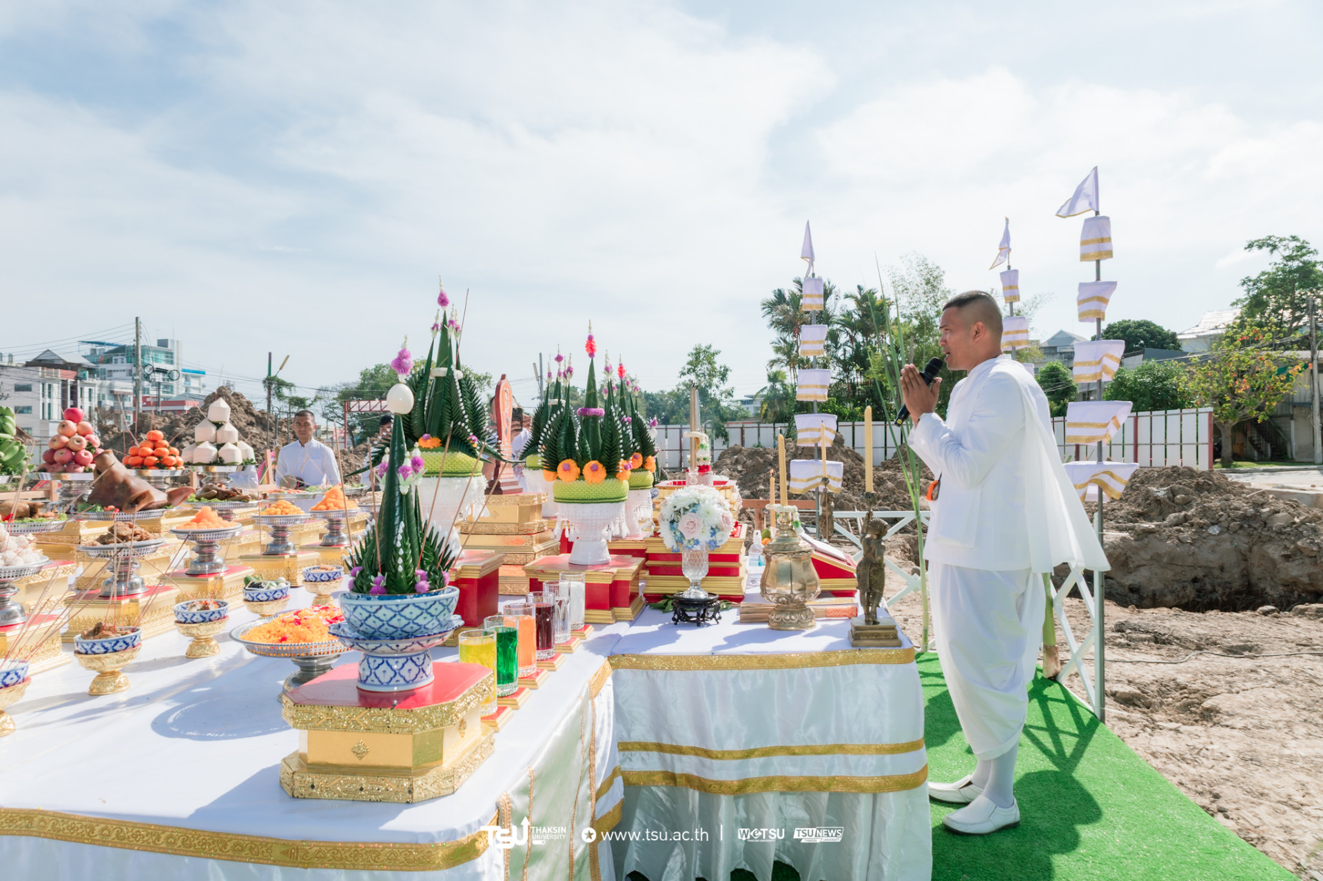 โรงเรียนสาธิตมหาวิทยาลัยทักษิณ ฝ่ายประถม จัดพิธีวางศิลาฤกษ์และลงเสาเอก เพื่อความเป็นสิริมงคลมงคลในการก่อสร้าง