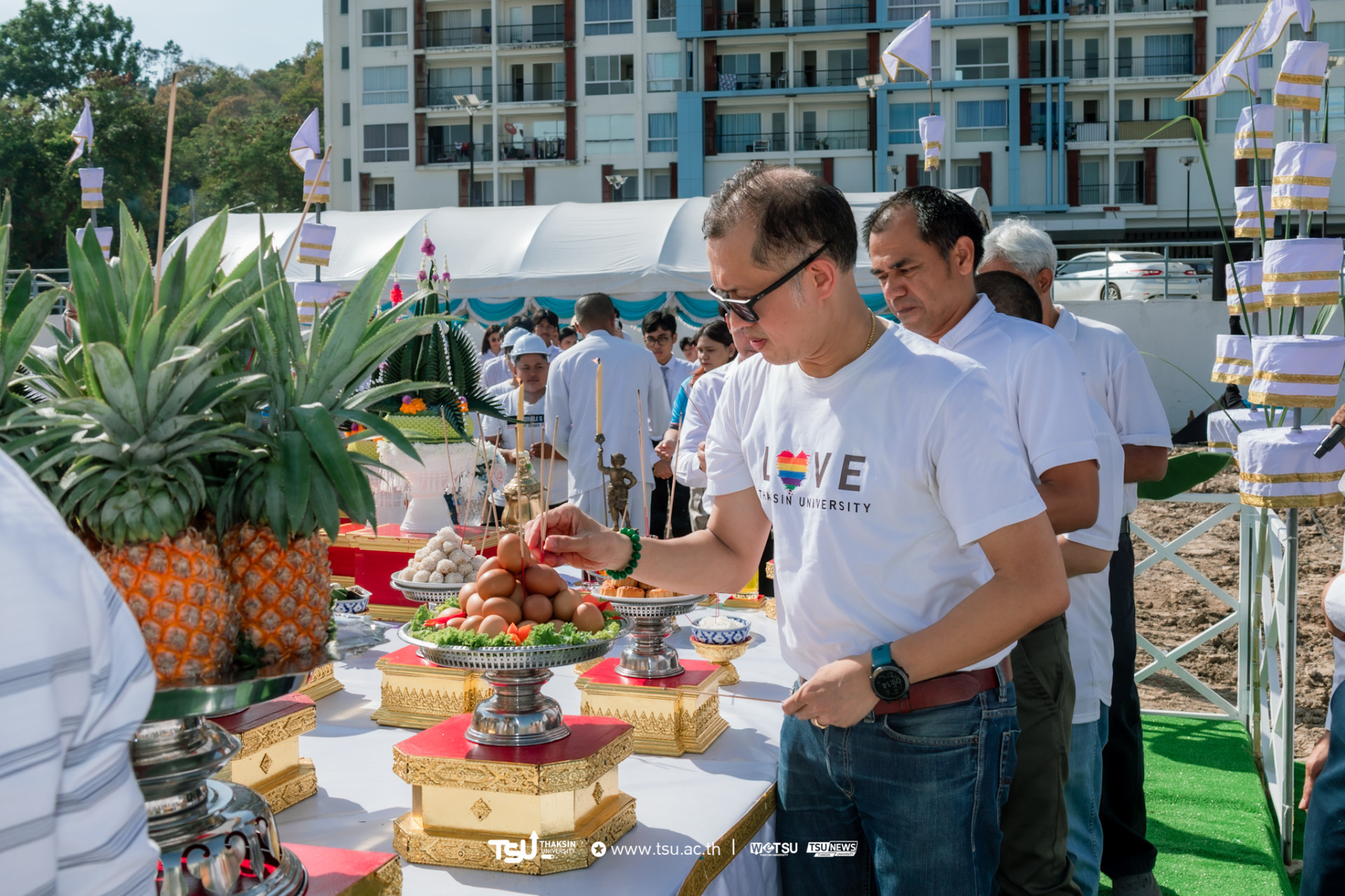 รองศาสตราจารย์ ดร.ณฐพงศ์ กล่าวว่า “จากความหวัง ความฝัน สู่ความจริงของการวางรากฐานการศึกษาอย่างยั่งยืน” คือถ้อยคำที่สะท้อนวิสัยทัศน์และเจตจำนงของมหาวิทยาลัยทักษิณในการมุ่งมั่นสร้างโรงเรียนแห่งอนาคต ที่ไม่เพียงมอบความรู้ แต่ยังมอบความสุขให้แก่ทุกคนที่ได้เรียนรู้ภายในรั้วแห่งนี้วางรากฐานแห่งการศึกษา เพื่อก้าวสู่อนาคตที่มั่นคงของเด็ก ๆ รุ่นใหม่ ด้วยความร่วมแรงร่วมใจจากผู้บริหาร คณาจารย์ และผู้มีเกียรติที่ได้เข้าร่วมพิธี