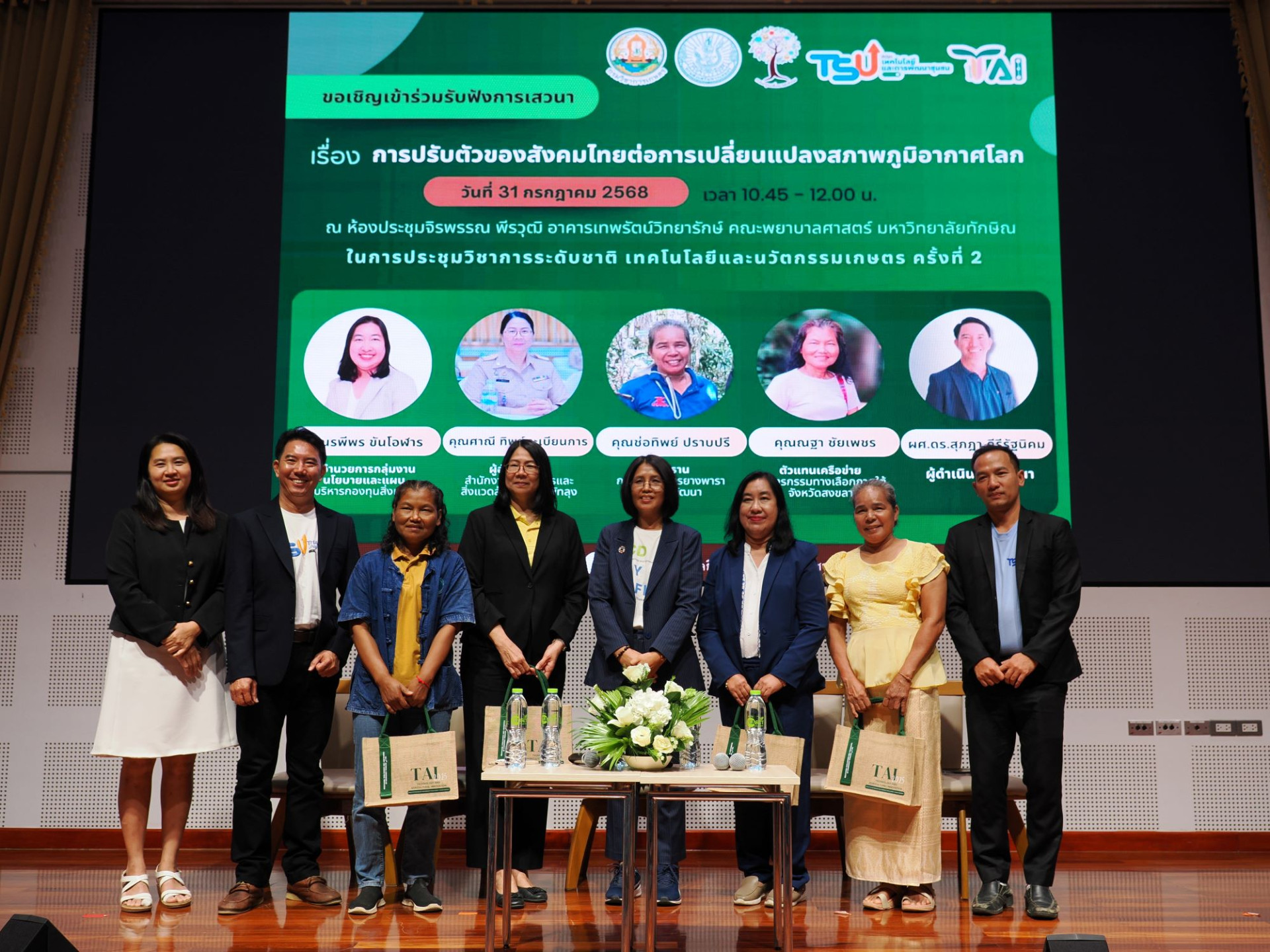 คณะเทคโนโลยีและการพัฒนาชุมชน มหาวิทยาลัยทักษิณ วิทยาเขตพัทลุง ร่วมกับกรมวิชาการเกษตร กรมส่งเสริมการเกษตร กรมพัฒนาที่ดิน สำนักงานพัฒนาที่ดินเขต 12 จังหวัดสงขลา และกองทุนสิ่งแวดล้อม จัดประชุมวิชาการระดับชาติ "เทคโนโลยีและนวัตกรรมการเกษตร" ครั้งที่ 2 TAI 2025 : The 2nd National Conference of Technology and Agricultural Innovation ระหว่างวันที่ 31 กรกฎาคม – 1 สิงหาคม 2568 ภายใต้การจัดงานเกษตรแฟร์ ครั้งที่ 19 ประจำปี 2568 โดยมีนักวิชาการ ผู้เชี่ยวชาญ และบุคลากรภาคเกษตรเข้าร่วม เพื่อแลกเปลี่ยนองค์ความรู้ทางวิชาการและแนวทางการพัฒนาเกษตรกรรมสู่ความยั่งยืน ท่ามกลางบริบทของการเปลี่ยนแปลงสภาพภูมิอากาศโลก