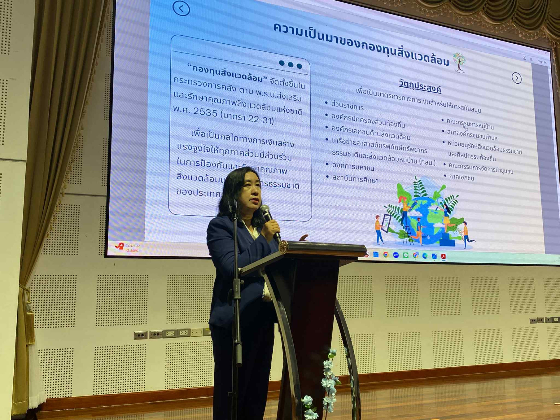 - นางรพีพร ขันโอฬาร ผู้อำนวยการกลุ่มงานนโยบายและแผน กองบริหารกองทุนสิ่งแวดล้อม