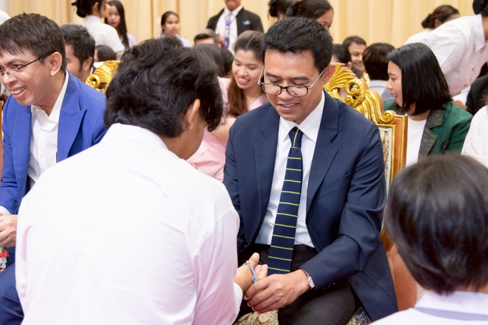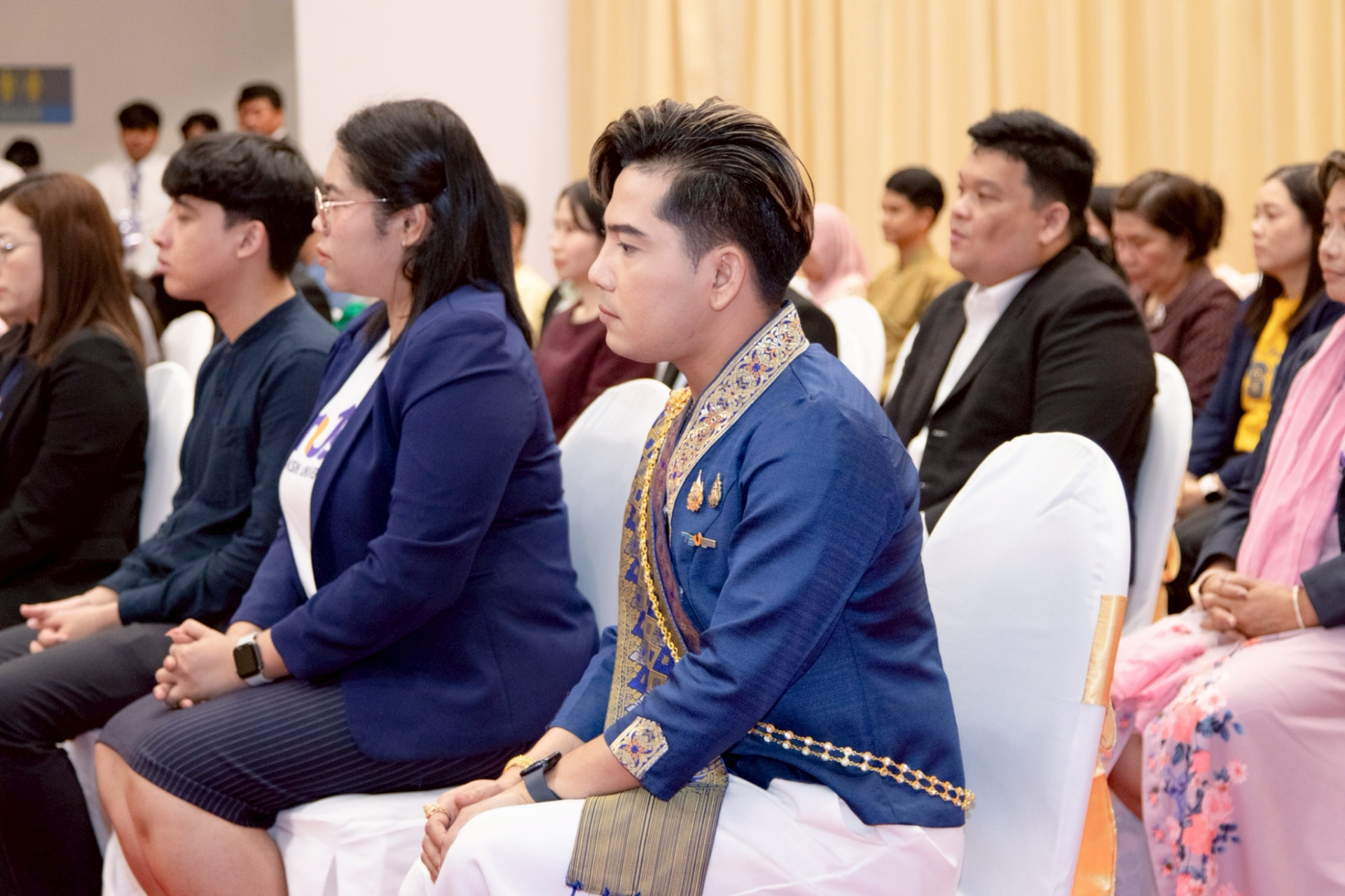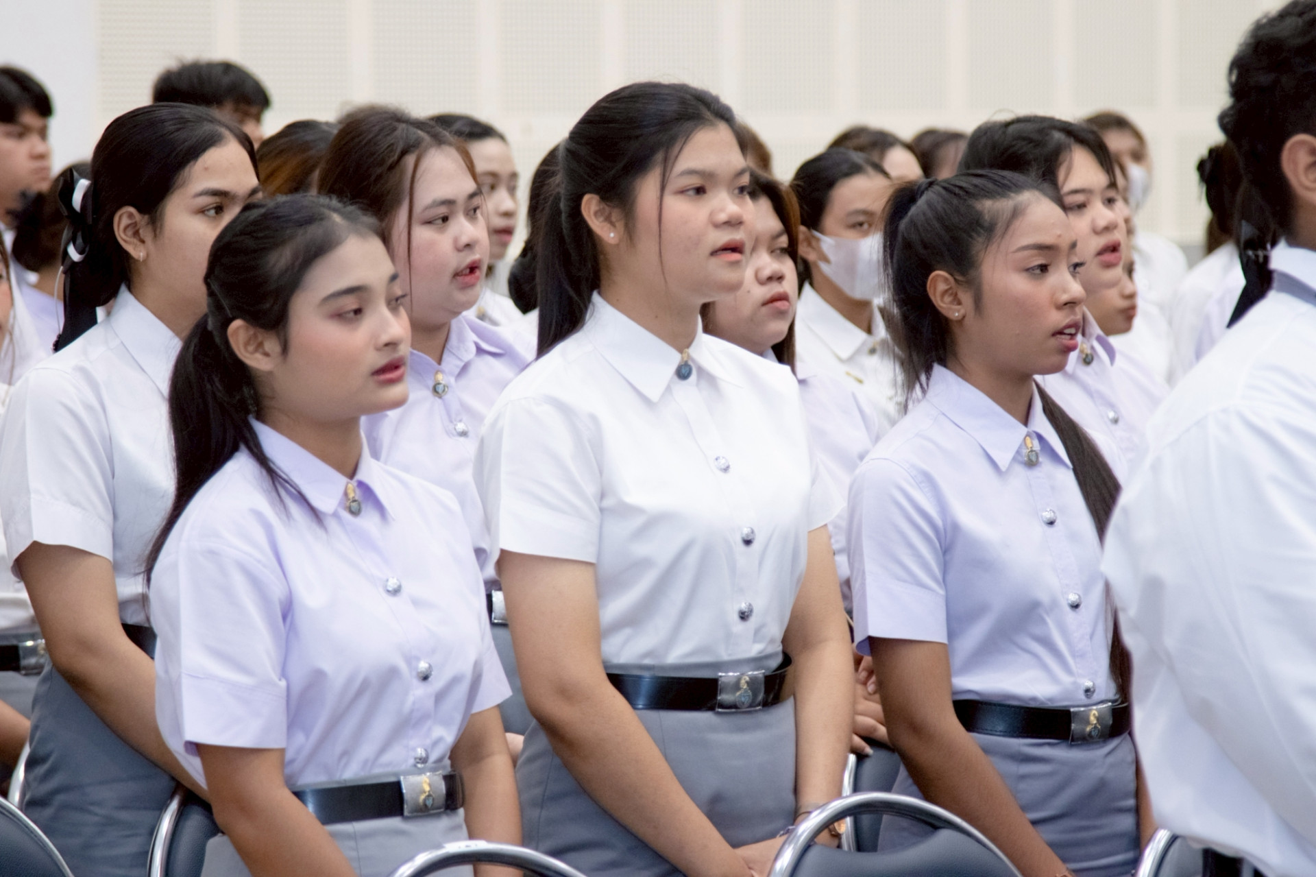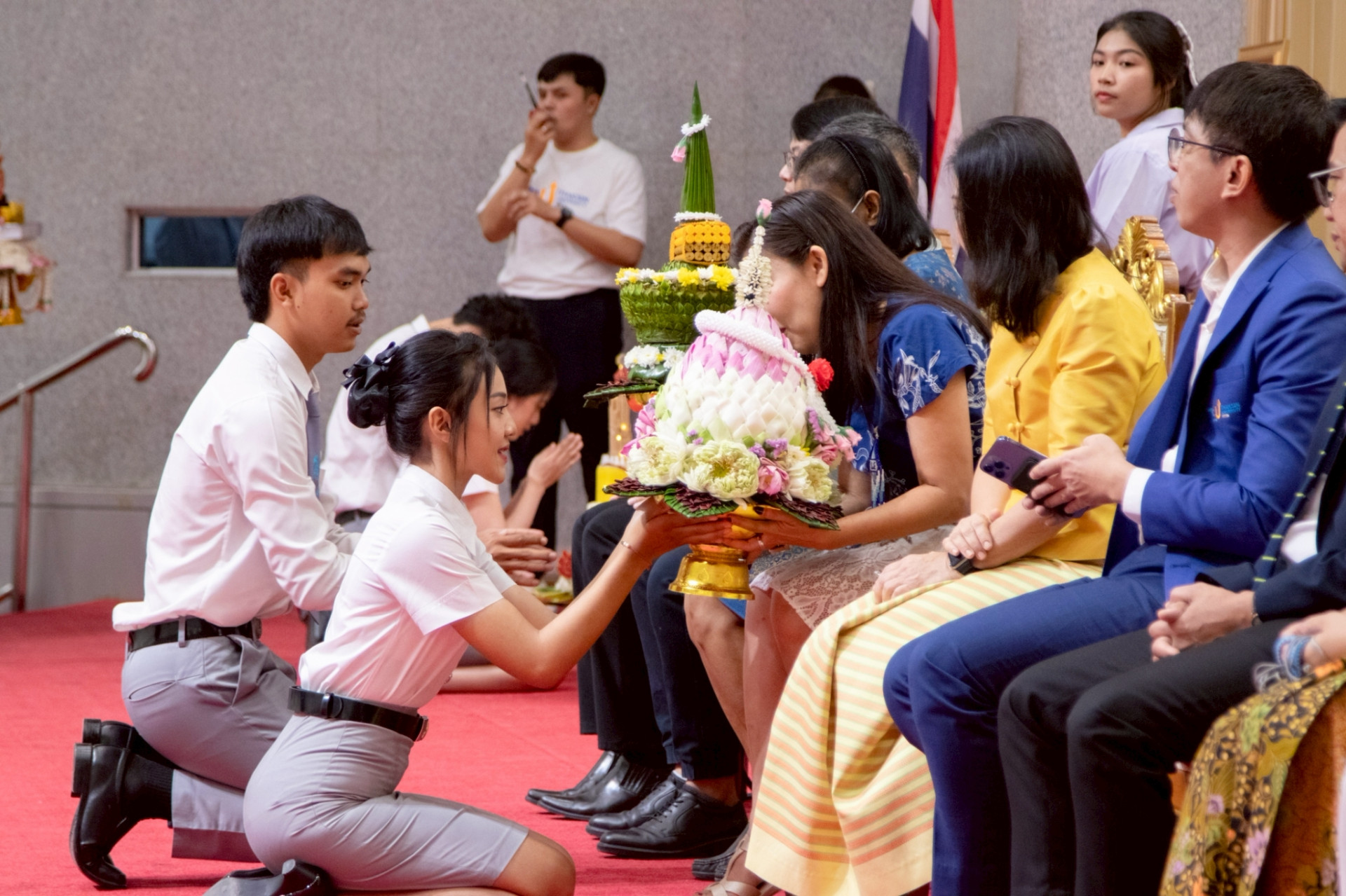 พิธีเริ่มต้นด้วยความสงบ งดงาม และเปี่ยมไปด้วยความหมาย นิสิตชั้นปีที่ 1 พร้อมใจกันแต่งกายด้วยชุดพิธีการ ขณะเดียวกัน คณาจารย์ร่วมงานด้วยชุดผ้าไทย บรรยากาศในหอประชุมเฉลิมพระเกียรติอบอวลไปด้วยความเคารพและศรัทธา