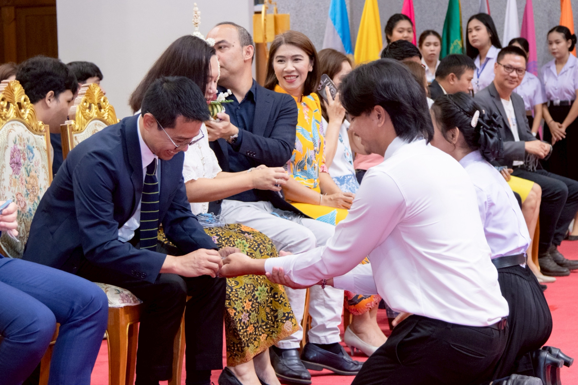 ช่วงพิธีมอบตัวเป็นศิษย์และมอบความรักจากหัวใจ ตัวแทนนิสิตมอบช่อดอกไม้แก่ผู้บริหารและคณาจารย์ เป็นสัญลักษณ์ของความกตัญญู นิสิตทุกคนได้แสดงความเคารพต่อครูอาจารย์ และรับของที่ระลึกจากผู้บริหารและคณาจารย์อย่างเป็นกันเอง นอกจากนี้ยังมีช่วงพิเศษสำหรับนิสิตมุสลิมในการแสดงความเคารพอย่างเหมาะสมกับวัฒนธรรมทางศาสนา