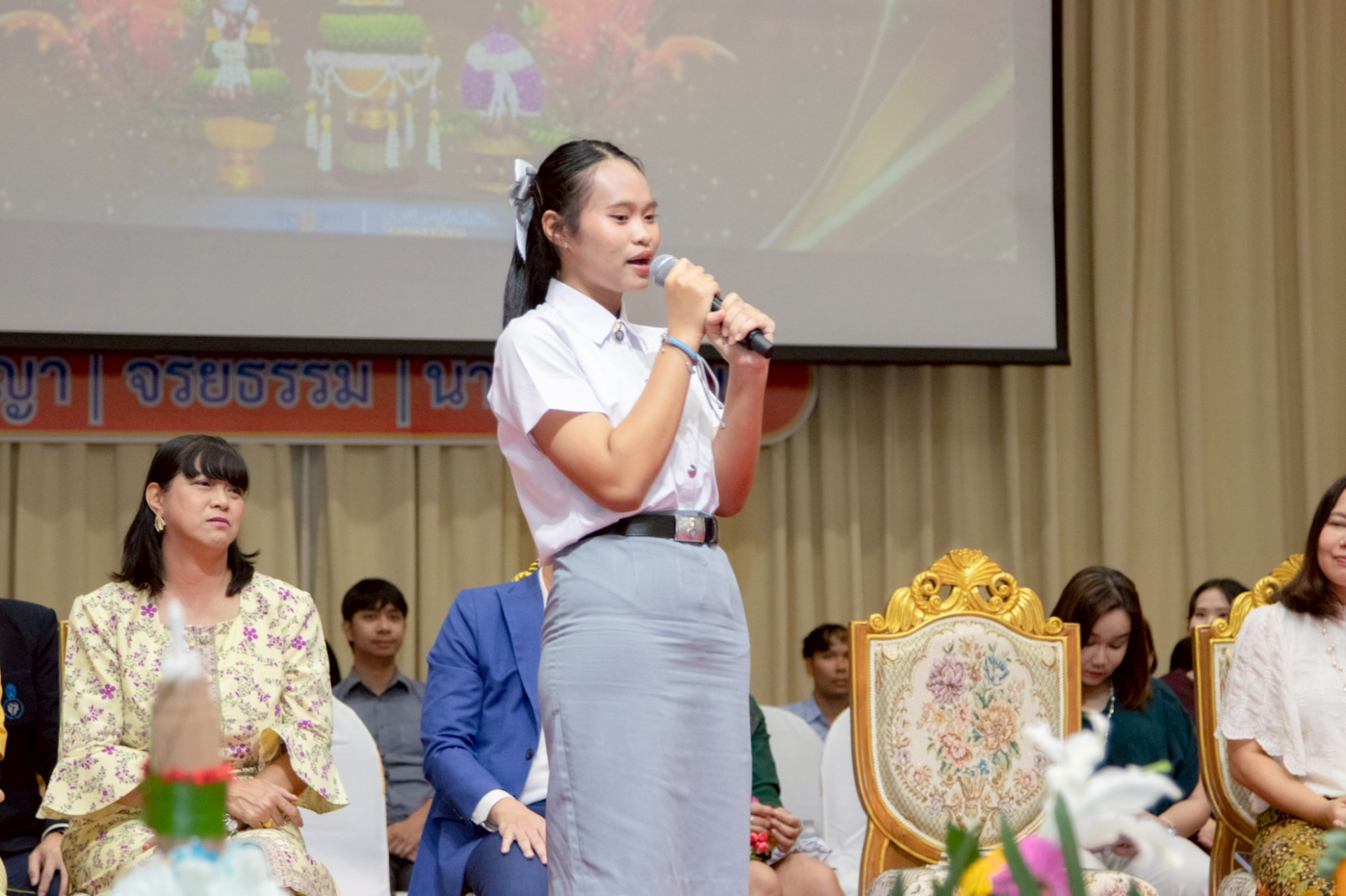 หลังจากนั้นประธานในพิธีได้กล่าวโอวาทให้ข้อคิด ข้อเตือนใจ และแรงบันดาลใจแก่นิสิต ตัวแทนนิสิตจากแต่ละคณะขึ้นกล่าวแสดงความรู้สึกที่มีต่อครูอาจารย์ พร้อมทั้งมอบรางวัล “ครูในดวงใจ” และช่อดอกไม้แก่คณาจารย์ที่ได้รับการยกย่อง