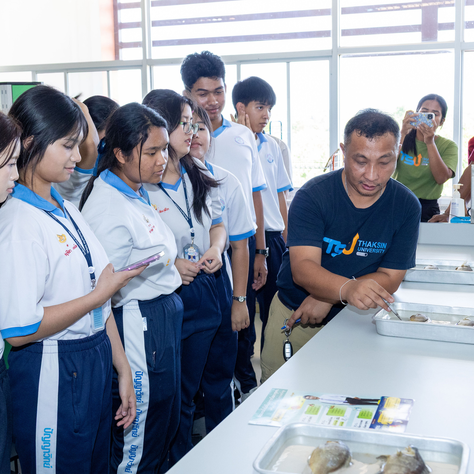 นอกจากการรับฟังข้อมูล นักเรียนยังได้สัมผัสบรรยากาศการเรียนรู้ภายในมหาวิทยาลัยทักษิณ วิทยาเขตพัทลุง ซึ่งเต็มไปด้วยสิ่งแวดล้อมที่เอื้อต่อการพัฒนาศักยภาพทั้งด้านวิชาการและทักษะชีวิต สะท้อนถึงความมุ่งมั่นของมหาวิทยาลัยทักษิณในการเป็นสถาบันการศึกษาที่พร้อมบ่มเพาะความรู้ สร้างบัณฑิตที่มีคุณภาพ และตอบโจทย์การพัฒนาสังคม