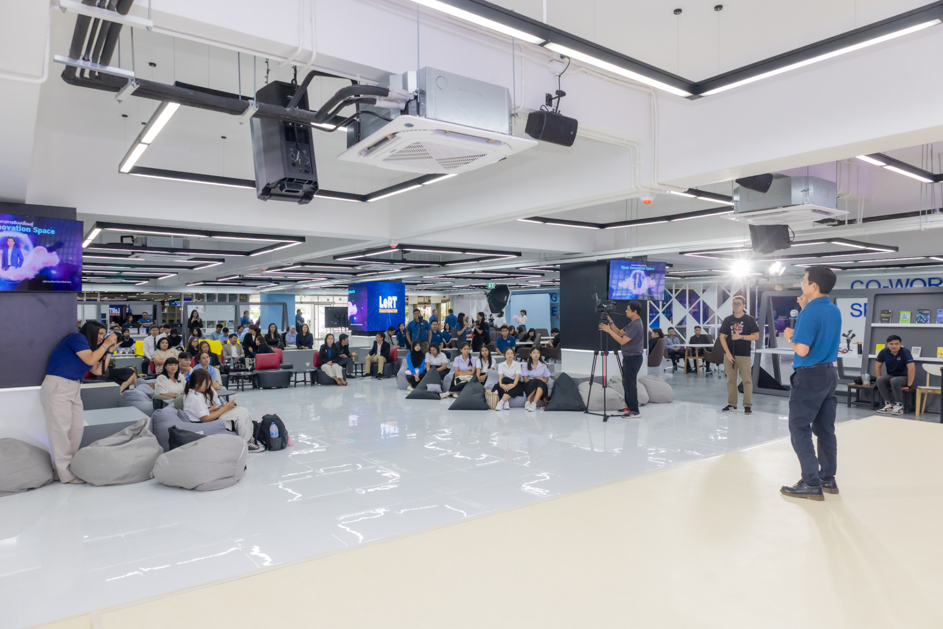“พื้นที่หลักของ Smart Learning Space ประกอบด้วย 4 โซนสำคัญ ได้แก่ 1) Central Activity Zone – พื้นที่กลางสำหรับกิจกรรม นิทรรศการ และเวิร์กช็อป สร้างปฏิสัมพันธ์และแรงบันดาลใจ 2) Innovation & Exhibition Zone – เวทีแสดงศักยภาพด้านนวัตกรรมและผลงานเด่นจากทุกคณะ 3) Co-working Space – พื้นที่ทำงานร่วมกัน รองรับทีมโปรเจกต์ กลุ่มเรียน และห้องประชุม และ 4) Learning Space – พื้นที่เรียนรู้ส่วนตัวที่ออกแบบให้โปร่ง สงบ และเอื้อต่อสมาธิ พื้นที่ทั้งหมดได้รับการออกแบบโดยคำนึงถึงการใช้งานจริงของนิสิตเป็นหลัก ทั้งความสะดวกสบาย ความยืดหยุ่น การเข้าถึงเทคโนโลยี และสภาพแวดล้อมที่ช่วยให้การเรียนรู้เกิดขึ้นได้ตลอดเวลา” อาจารย์ ดร.คณิดา สินใหม กล่าว