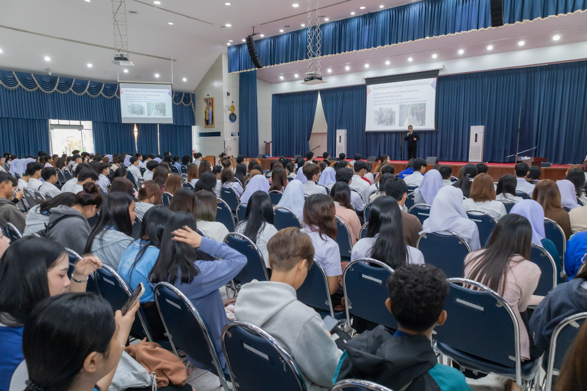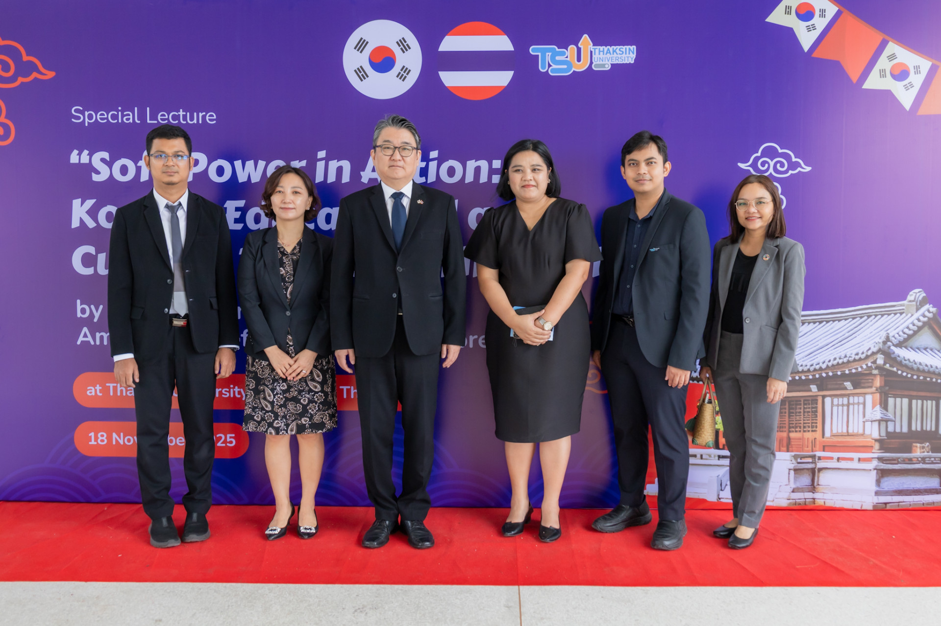 อีกหนึ่งกิจกรรมสำคัญของการเยือนครั้งนี้ คือการบรรยายพิเศษโดยเอกอัครราชทูต H.E. Yongmin Park ในหัวข้อ “Soft Power in Action: Korea’s Educational and Cultural Promotion in Thailand” ณ หอประชุมปาริชาต มหาวิทยาลัยทักษิณ วิทยาเขตสงขลา โดยเน้นย้ำบทบาทของเกาหลีใต้ในการใช้พลังทางวัฒนธรรม (Cultural Soft Power) และระบบการศึกษาเป็นเครื่องมือสร้างความสัมพันธ์อันแน่นแฟ้นกับนานาประเทศ รวมถึงการชี้ให้เห็นความเป็นไปได้ใหม่ ๆ ในการร่วมมือด้านภาษา วัฒนธรรม และโครงการแลกเปลี่ยนนิสิต ในอนาคต บรรยากาศในหอประชุมเป็นไปด้วยความอบอุ่นและสนุกสนานในการเรียนรู้ โดยมีนิสิตเข้าร่วมฟังบรรยายจำนวนกว่า 300 คน