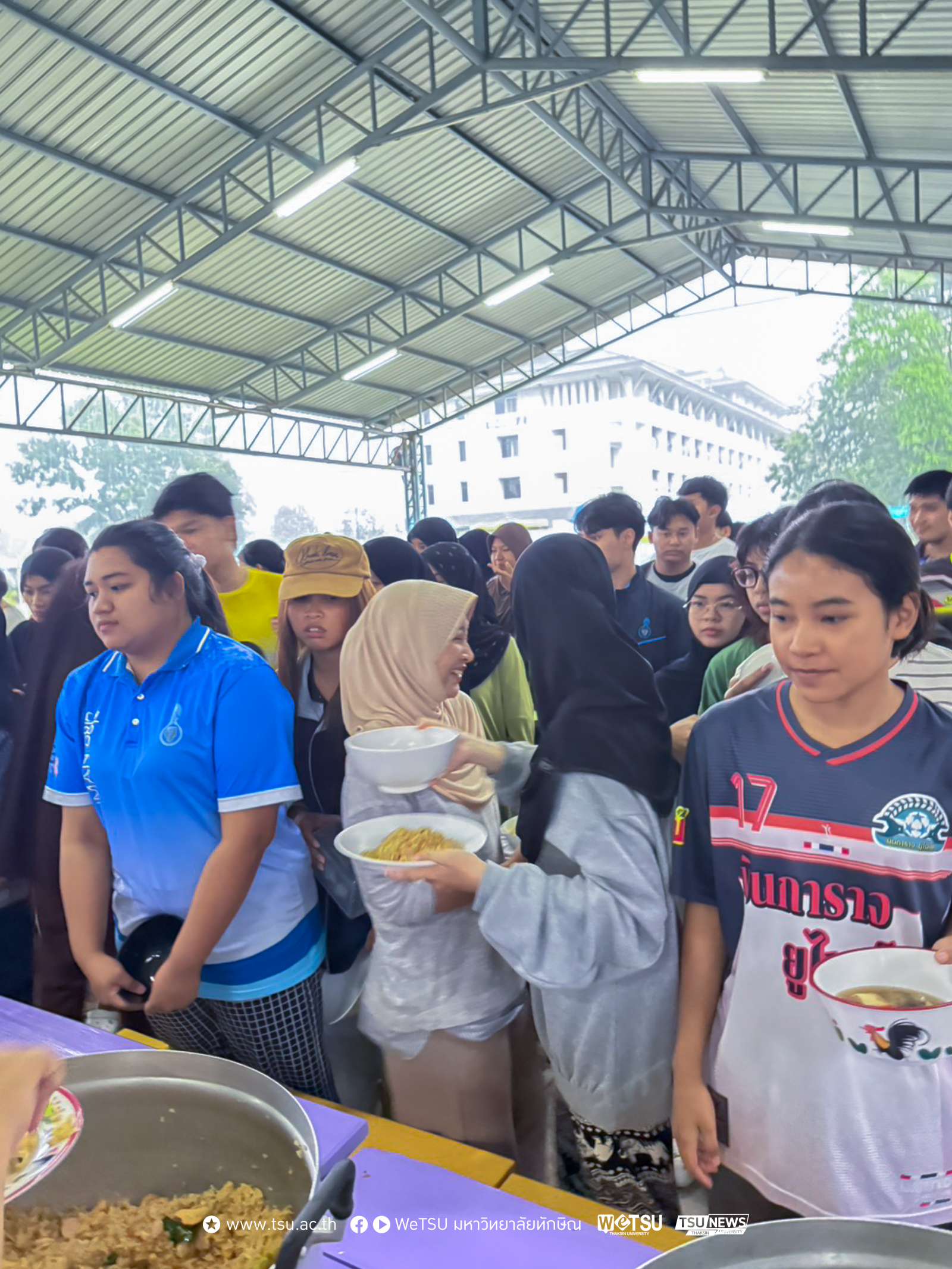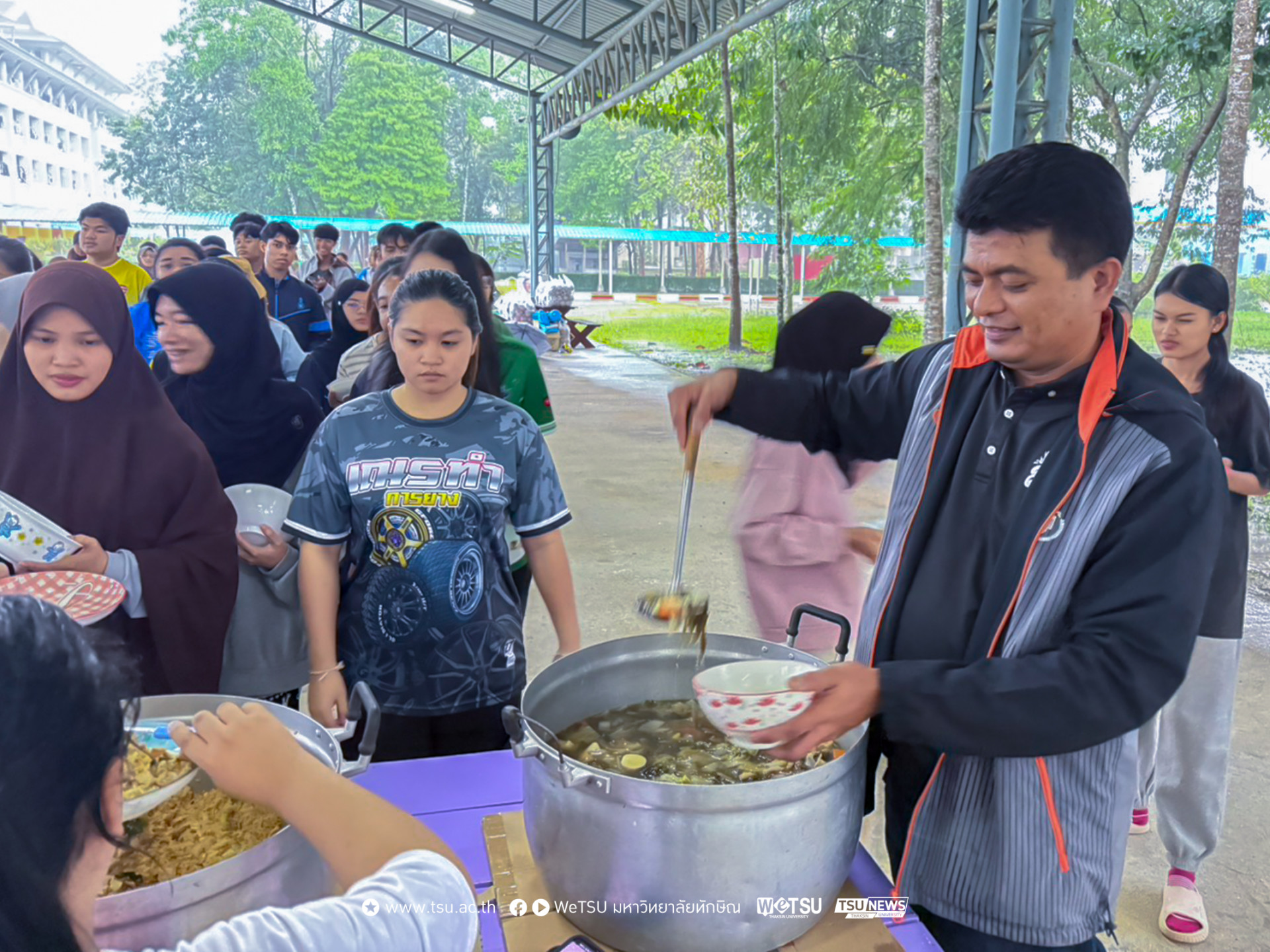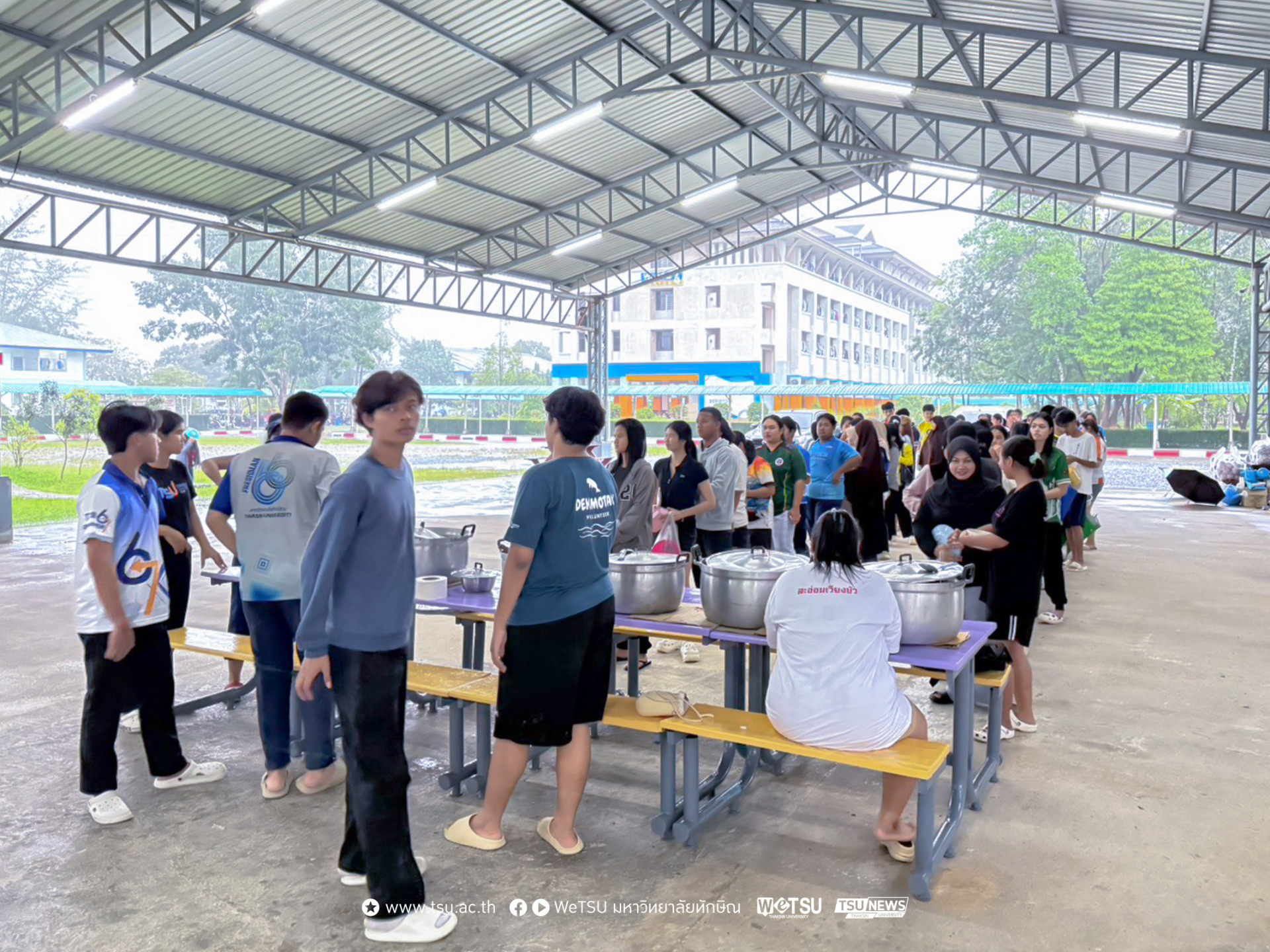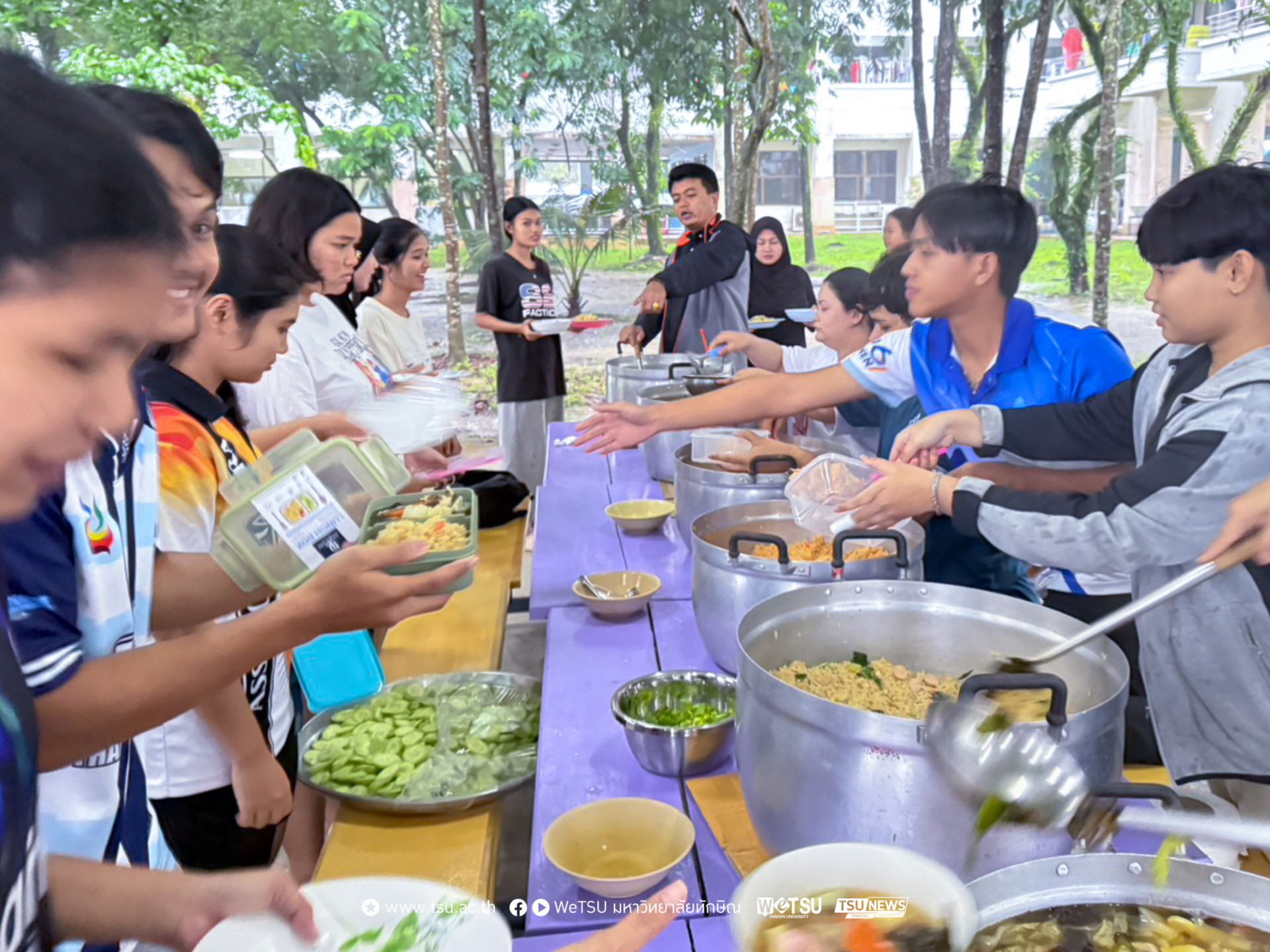 ฝ่ายกิจการนิสิต มหาวิทยาลัยทักษิณ วิทยาเขตพัทลุง เปิด “ครัวน้ำท่วม” จัดเลี้ยงอาหารแก่นิสิต บรรเทาความเดือดร้อนที่ได้รับผลกระทบจากฝนตกหนักและน้ำท่วมฉับพลัน ลดความกังวลของผู้ปกครอง มอบเมนูอาหารอุ่นใจให้บริการต่อเนื่องทุกวันจนกว่าสถานการณ์ฝนตกหนักและน้ำท่วมจะคลี่คลายกลับสู่ภาวะปกติ