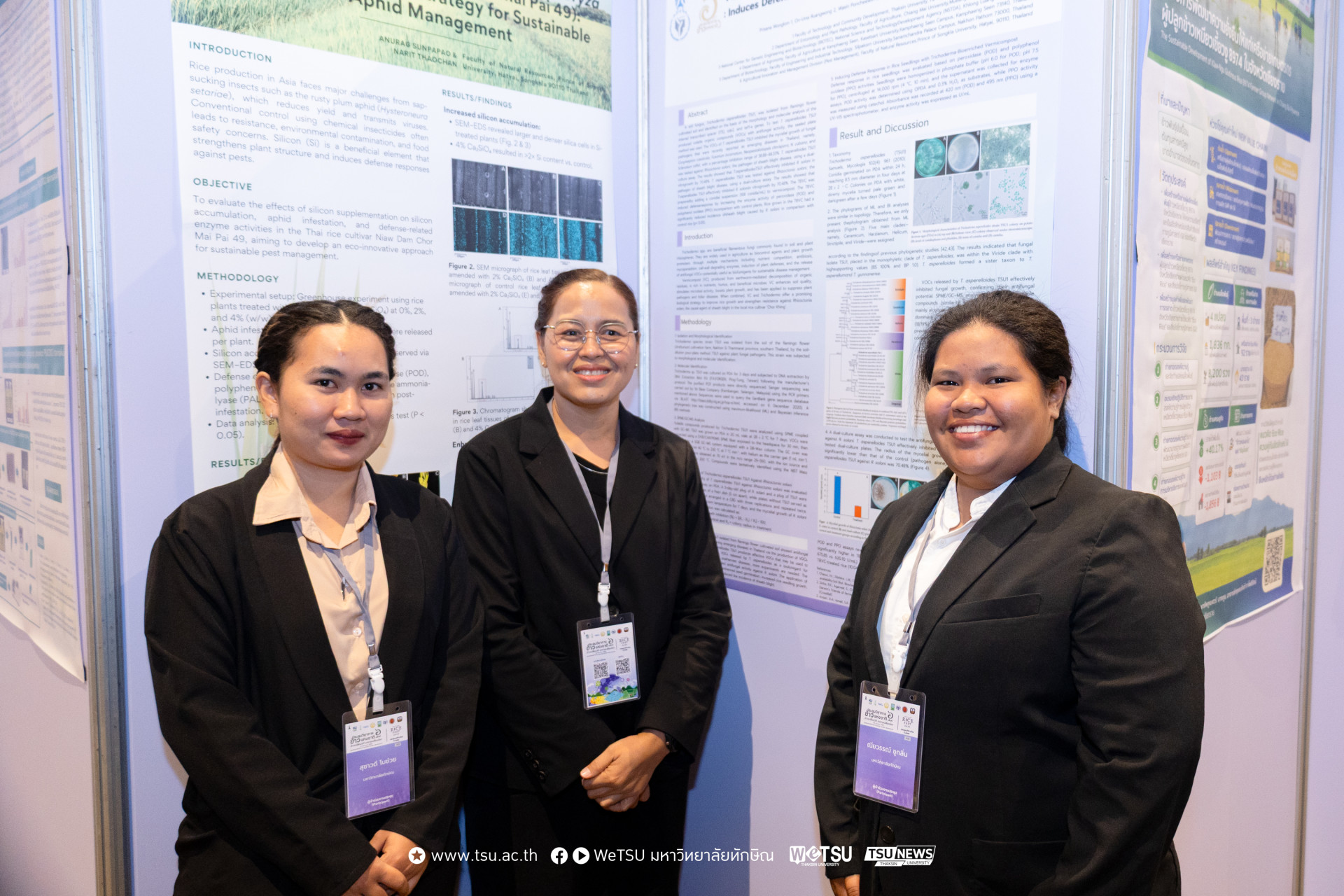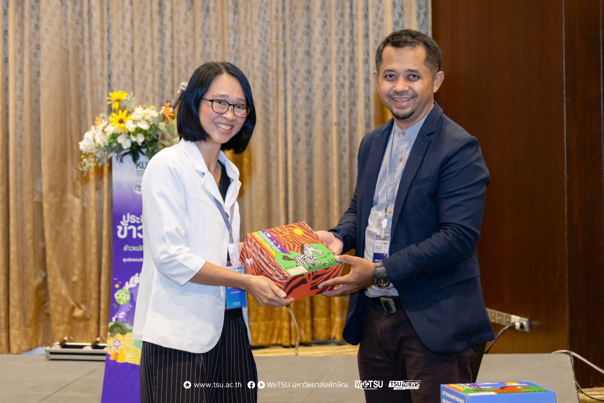 นักวิจัยจากมหาวิทยาลัยทักษิณยังได้นำเสนอผลงานวิจัยสำคัญบนเวทีวิชาการ อาทิ งาน “การเพิ่มมูลค่าข้าวและรําข้าวสังข์หยดสู่ผลิตภัณฑ์สุขภาพมูลค่าสูง: ทางเลือกของเกษตรกรท้องถิ่นสู่ความยั่งยืนทางรายได้” โดย ดร.พรวิชัย เต็มบุตร คณะอุตสาหกรรมเกษตรและชีวภาพ และงาน “อิทธิพลของคุณสมบัติทางเคมีกายภาพของข้าวนาริมเล (พัทลุง) ต่อคุณภาพของข้าวเกรียบปลาลูกเบร่” โดย ผศ.ดร.นันทิยา พนมจันทร์ คณะเทคโนโลยีและการพัฒนาชุมชน สะท้อนความมุ่งมั่นของนักวิจัยรุ่นใหม่ในการต่อยอดภูมิปัญญาท้องถิ่นด้วยองค์ความรู้ทางวิทยาศาสตร์สู่ผลิตภัณฑ์ที่มีมูลค่าและศักยภาพเชิงพาณิชย์