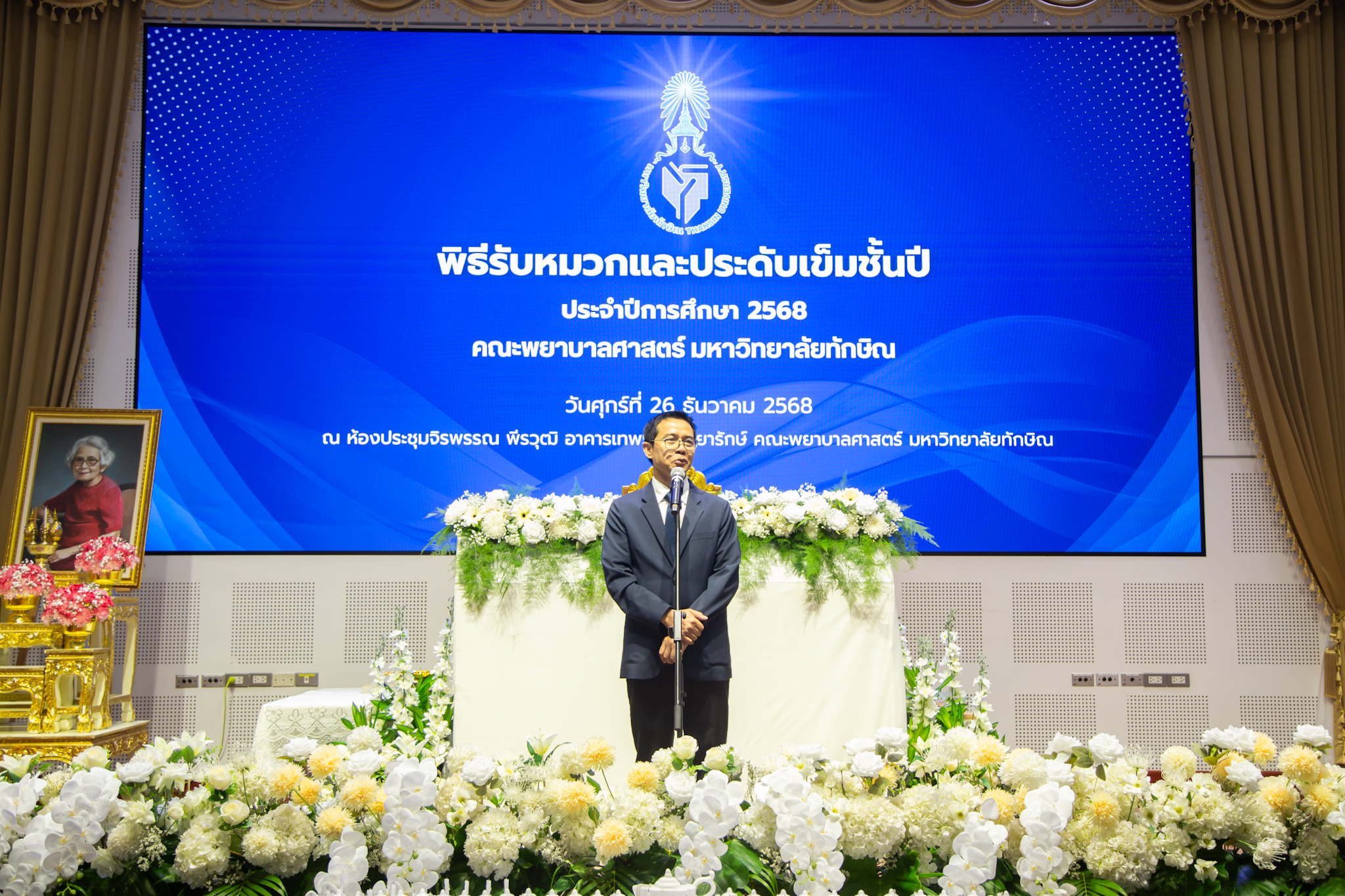 มหาวิทยาลัยทักษิณ โดยคณะพยาบาลศาสตร์ จัดพิธีรับหมวกพยาบาล ชั้นปีที่ 2 เพื่อแสดงความยินดีและต้อนรับนิสิตพยาบาลสู่ก้าวสำคัญของการเรียนรู้ในวิชาชีพพยาบาล จำนวน 104 คน โดยได้รับเกียรติจาก ผู้ช่วยศาสตราจารย์ ดร.หทัยรัตน์ แสงจันทร์ คณบดีคณะพยาบาลศาสตร์ เป็นผู้มอบหมวกพยาบาลแก่นิสิต พิธีดังกล่าวไม่ใช่เพียงกิจกรรมตามธรรมเนียม หากแต่เป็นช่วงเวลาที่ช่วยตอกย้ำความหมายของการเป็น “ผู้ดูแลชีวิต”