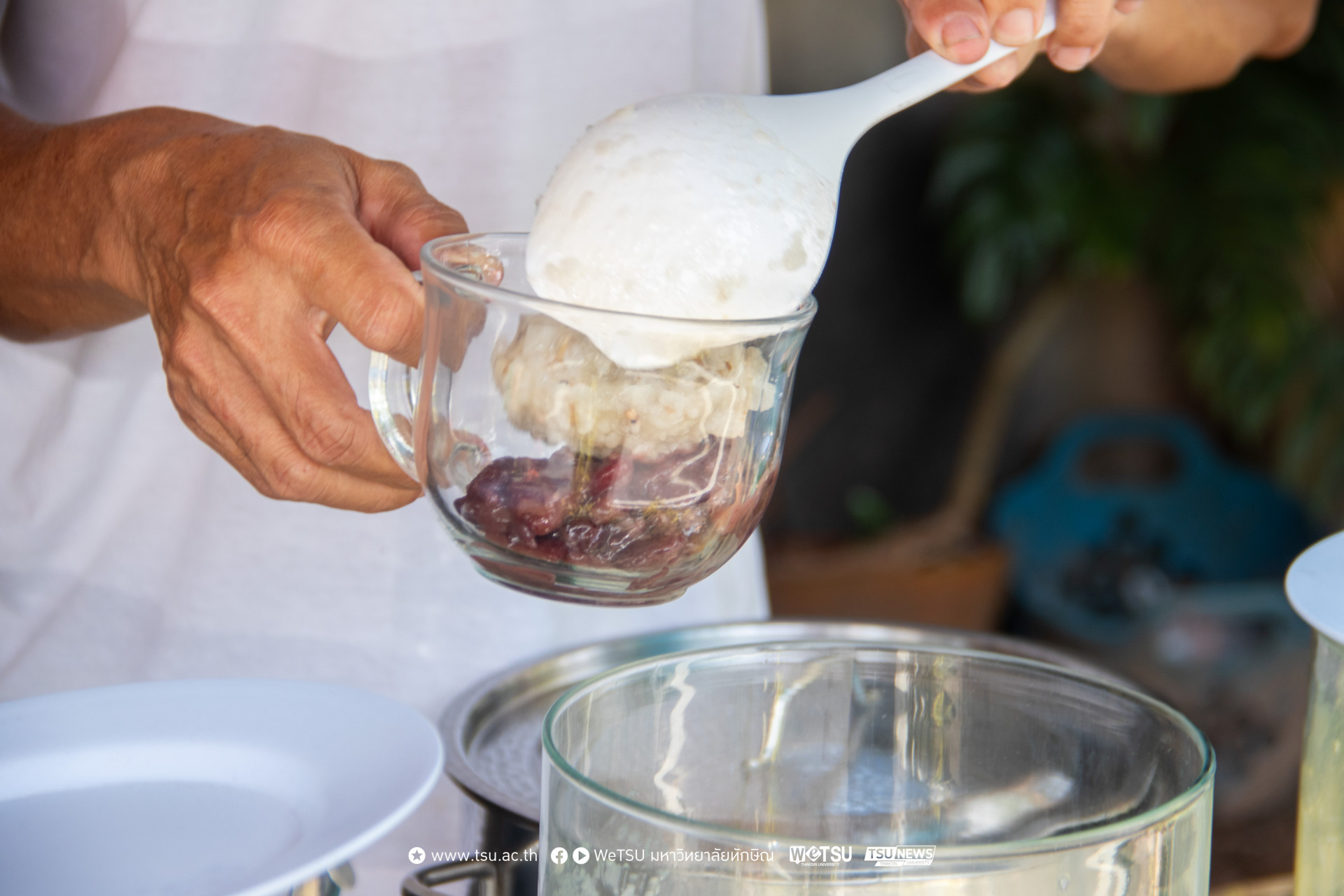ถัดจากร้านมันเดือยไม่มาก ขณะทัวร์ของเราก็เดินมาหยุดอยู่ที่ซุ้มเล็ก ๆ ของบ้านหลังหนึ่ง กระปุกกะปิและสวาในถุงพร้อมขายตั้งเรียงรายรอคนมาจับจอง พ่อค้าเจ้าของบ้านใจดีให้เราชิมสวา พร้อมสาธิตวิธีการเก็บผลจากต้นด้วยตะกร้อเก็บผลไม้รูปทรงไม่คุ้นตา นอกจากสนุกแล้วยังอิ่มไปตามๆ กัน