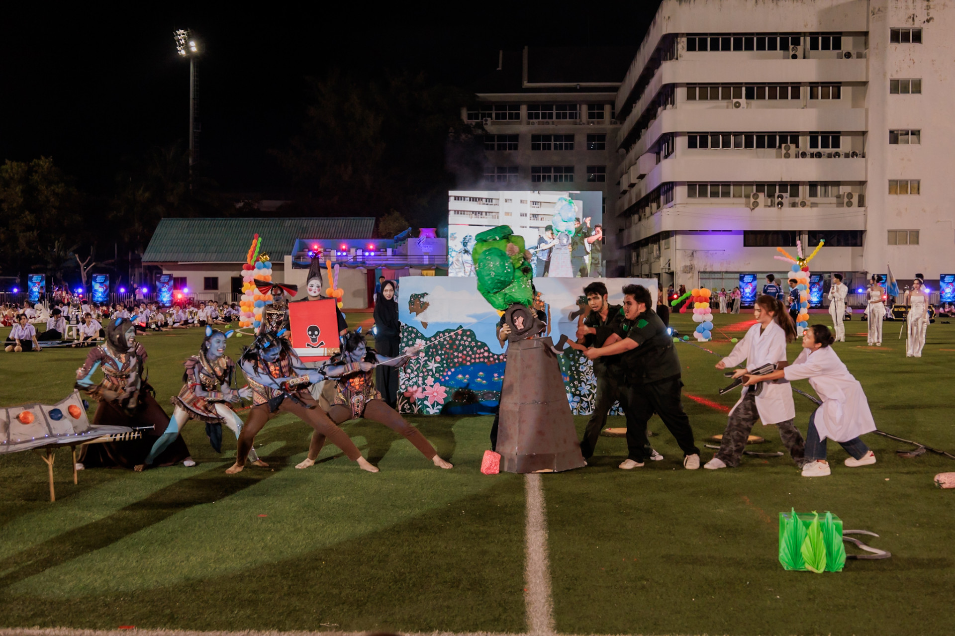 บรรยากาศในพิธีเปิดเริ่มต้นด้วยความตื่นตาตื่นใจของขบวนพาเหรดจากคณะต่างๆ ที่มาในธีม Sustain the Game. Innovate the World. Shape the Future. โดยแต่ละคณะได้สร้างสรรค์ชุดและอุปกรณ์ประกอบขบวนที่สะท้อนถึงเอกลักษณ์ของตนเองควบคู่ไปกับแนวคิดความยั่งยืน