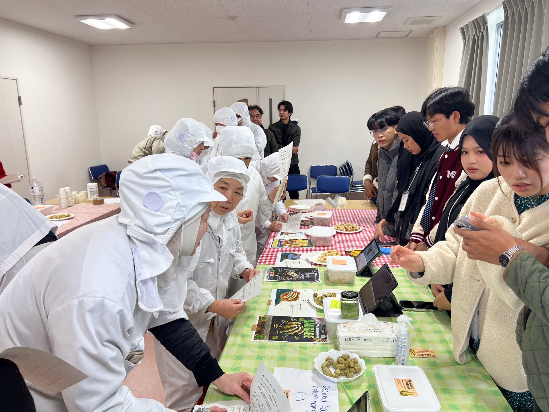นอกจากนี้ ยังได้ลงพื้นที่ทำวิจัยภาคสนามร่วมกับนักศึกษา UKK ในเมืองคิตะคิวชู เพื่อเก็บข้อมูลผู้บริโภคจริง นำมาวิเคราะห์ ทบทวน และสรุปผลการวิจัย รวมถึงเข้าศึกษาดูงาน ณ บริษัท Yagishita Ham Co., Ltd. ผู้ประกอบการด้านอุตสาหกรรมอาหารของประเทศญี่ปุ่น เพื่อเรียนรู้กระบวนการผลิต มาตรฐานคุณภาพ และการพัฒนาผลิตภัณฑ์เชิงพาณิชย์
