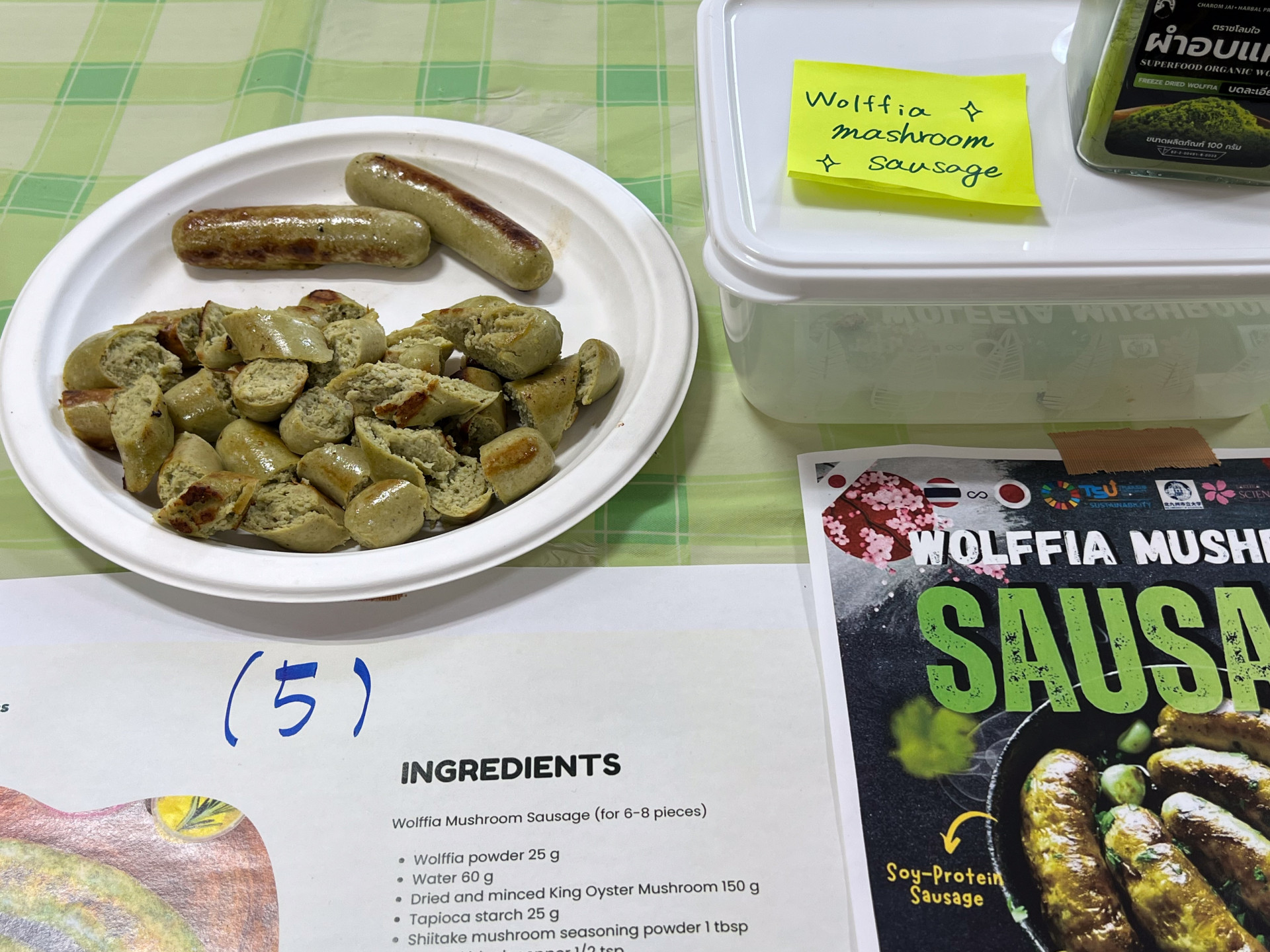 ไฮไลต์สำคัญของโครงการคือการ ทดลองพัฒนาต้นแบบผลิตภัณฑ์อาหารเพื่อสุขภาพ ได้แก่ ไส้กรอกจากโปรตีนถั่วเหลือง (Functional Soy Meat Sausage) ครอบคลุมตั้งแต่กระบวนการออกแบบสูตร การทดลองผลิต การชิมทดสอบ ไปจนถึงการนำเสนอผลงานต้นแบบ ซึ่งช่วยเสริมสร้างทักษะด้านนวัตกรรมอาหาร การทำงานเป็นทีม และการสื่อสารเชิงวิชาการในระดับนานาชาติ