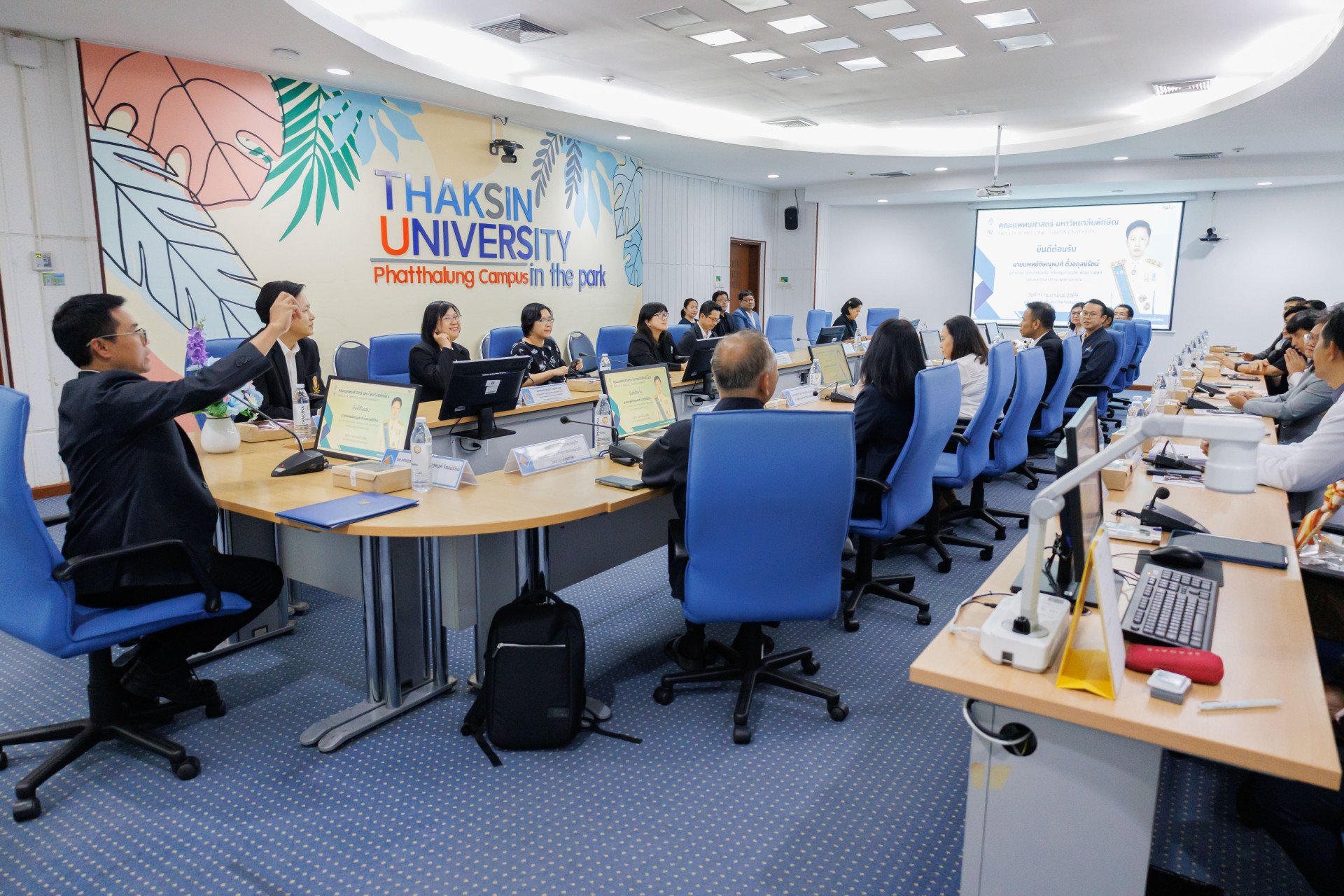 สำหรับกำหนดการในวันที่ 11 กุมภาพันธ์ 2569 คณะตรวจเยี่ยมได้เดินทางถึงมหาวิทยาลัยทักษิณ วิทยาเขตพัทลุง ในช่วงบ่าย เข้าร่วมพิธีต้อนรับและรับฟังการบรรยายภาพรวมการดำเนินงานของมหาวิทยาลัย ณ ห้องประชุมปาริฉัตร จากนั้นได้เยี่ยมชมสถานที่สำคัญ ได้แก่ อาคารเรียนรวม ศูนย์เครื่องมือกลาง สถาบันทรัพยากรการเรียนรู้และเทคโนโลยีดิจิทัล คณะวิทยาศาสตร์สุขภาพและการกีฬา และคณะพยาบาลและสหเวช เพื่อประเมินความพร้อมด้านการจัดการเรียนการสอนและการสนับสนุนทางวิชาการ
