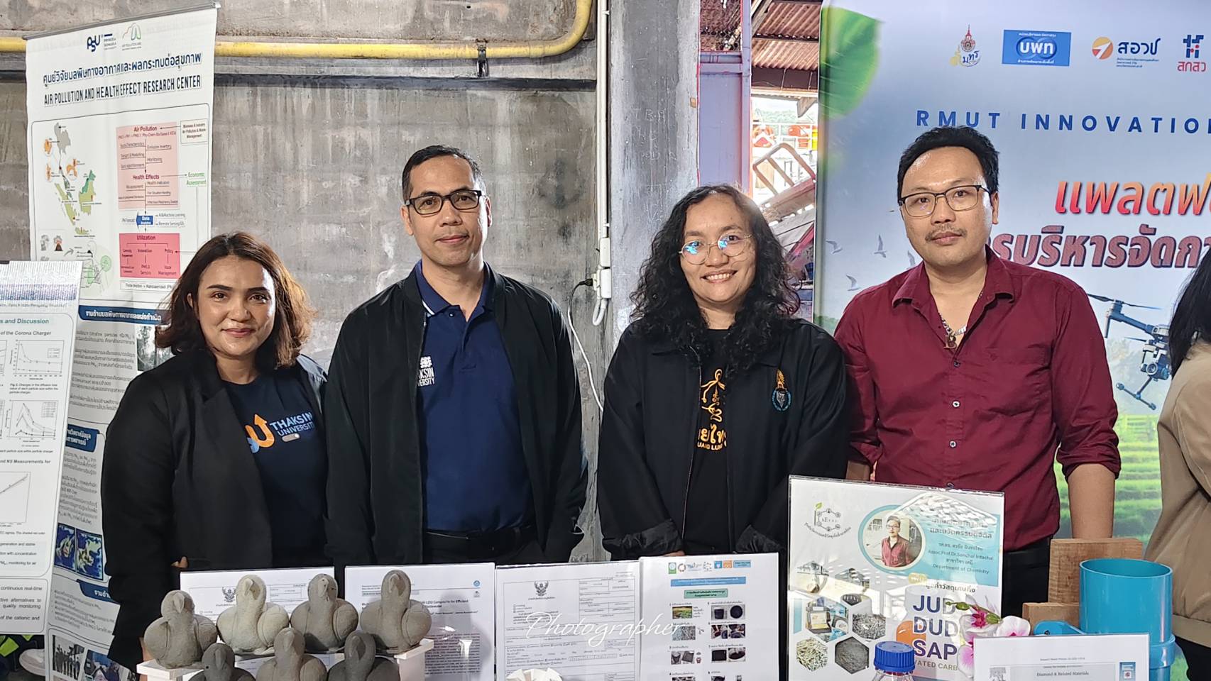 เมื่อวันที่ 11 กุมภาพันธ์ 2569 ณ โรงสีแดง หับ โห้ หิ้น จังหวัดสงขลา มหาวิทยาลัยทักษิณ นำโดย ผู้ช่วยศาสตราจารย์ ดร.โชคชัย เหมือนมาศ รักษาการแทนรองผู้อำนวยการสถาบันวิจัยและนวัตกรรม พร้อมด้วย รองศาสตราจารย์ ดร.ศรชัย อินทะไชย หัวหน้าโครงการวิจัย “การเพิ่มมูลค่าของเสียทางการเกษตรเป็นถ่านกัมมันต์ และผสมกับตัวเร่งปฏิกิริยาด้วยวิธีสีเขียว เพื่อผลิตเชื้อเพลิงไฮโดรเจนและบำบัดน้ำเสียสารเคมีอันตราย” ร่วมนำเสนอผลงานผ่านนิทรรศการ