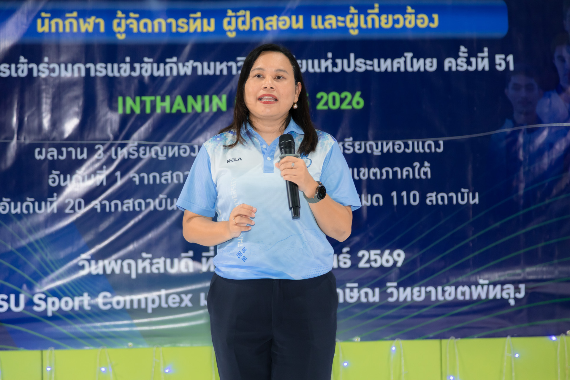 มหาวิทยาลัยทักษิณจัดงานเลี้ยงต้อนรับและขอบคุณนักกีฬาจากการแข่งขันกีฬามหาวิทยาลัยแห่งประเทศไทย ครั้งที่ 51 “อินทนิลเกมส์ 2026” ณ สนามกีฬา TSU Sport Complex มหาวิทยาลัยทักษิณ วิทยาเขตพัทลุง ภายในงานเต็มไปด้วยบรรยากาศอบอุ่น มีการร่วมรับประทานอาหารและการแสดงดนตรีสดที่สร้างความสุขและความประทับใจให้แก่นักกีฬา พร้อมพิธีมอบของที่ระลึกแก่ผู้ฝึกสอนและมอบเงินรางวัลแก่นักกีฬา โดยมี รองศาสตราจารย์ ดร.ณฐพงศ์ จิตรนิรัตน์ อธิการบดีมหาวิทยาลัยทักษิณ เป็นประธานในงาน พร้อมกล่าวชื่นชมและขอบคุณนักกีฬา