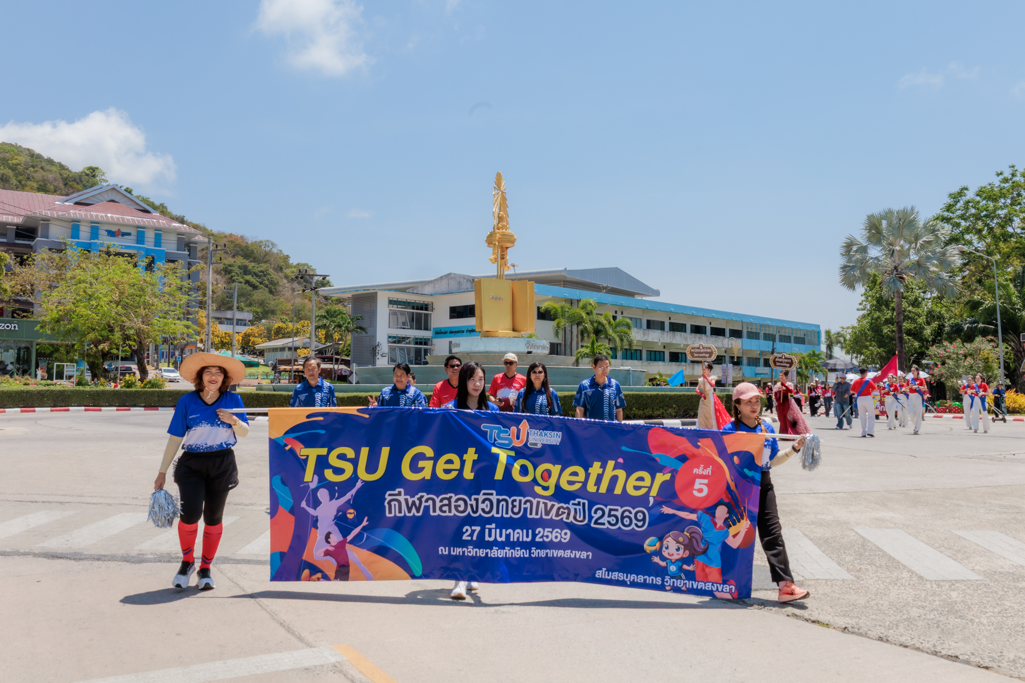 เมื่อวันที่ 27 มีนาคม 2569 สโมสรบุคลากรมหาวิทยาลัยทักษิณ วิทยาเขตสงขลา จัดโครงการเชื่อมความสัมพันธ์บุคลากร 2 วิทยาเขต ครั้งที่ 5 “TSU Get Together” ประจำปี 2569 ณ โรงยิมเนเซียมและสนามกีฬามหาวิทยาลัยทักษิณ วิทยาเขตสงขลา โดยมี อาจารย์วีณา ลีลาประเสริฐศิลป์ รองอธิการบดี วิทยาเขตสงขลา เป็นประธานในพิธีเปิด