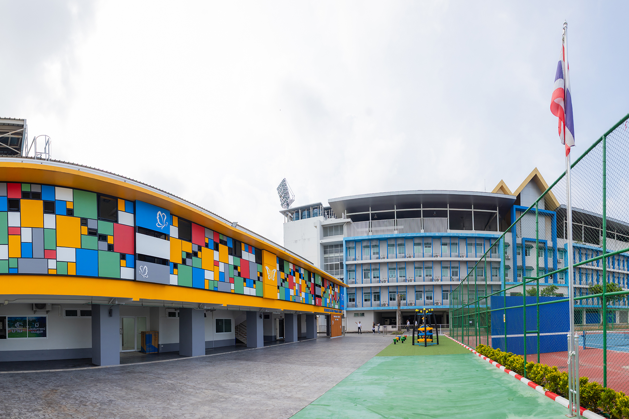 “อาคารผีเสื้อ” เป็นพื้นที่ที่ออกแบบเพื่อให้สอดคล้องกับแนวทางการพัฒนาการเรียนรู้ของโรงเรียนที่มุ่งเน้นการจัดการศึกษาแบบ Active Learning และ STEAM Education ในการส่งเสริมให้ผู้เรียนเกิดทักษะการคิดวิเคราะห์ การสร้างสรรค์ และการเรียนรู้จากการลงมือปฏิบัติจริง โดยโรงเรียนให้ความสำคัญกับการพัฒนาผู้เรียนอย่างรอบด้าน ทั้งด้านวิชาการ ทักษะชีวิต ดนตรี กีฬา และภาษา ภายใต้แนวคิดการสร้าง “โรงเรียนแห่งความสุข” (School of Happiness)