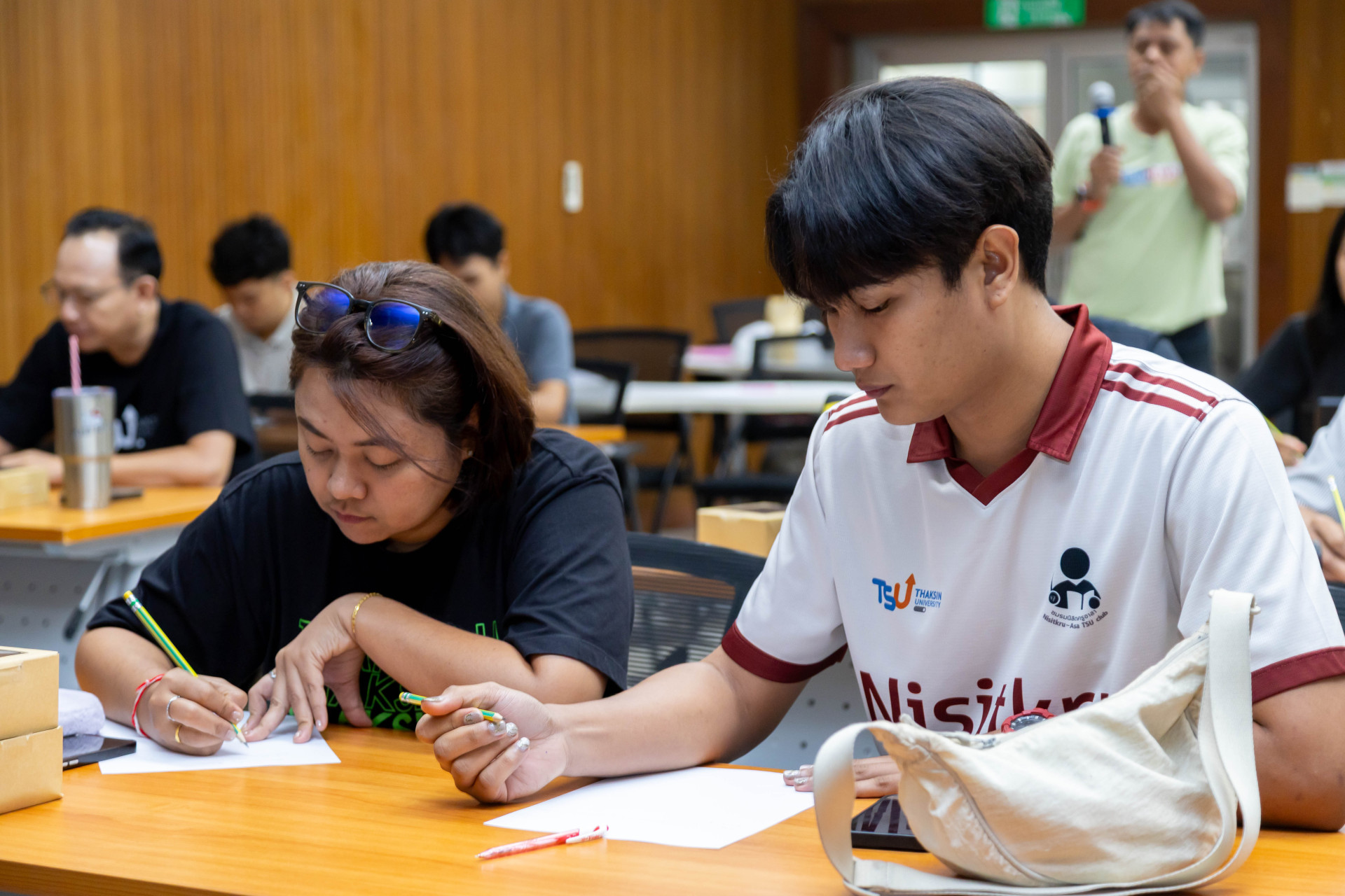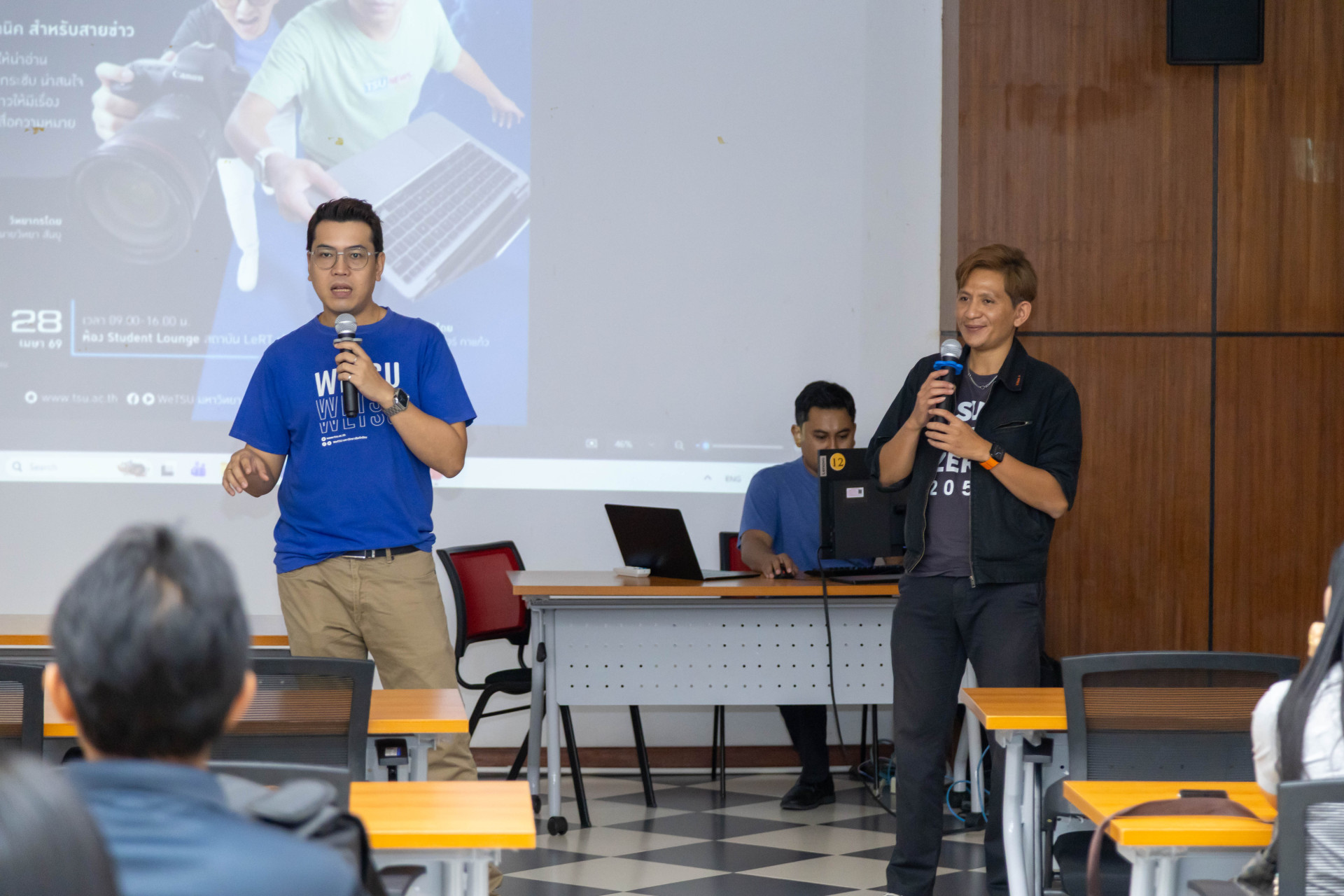 นอกจากนี้ ภายในกิจกรรมยังเปิดโอกาสให้ผู้เข้าร่วมได้ฝึกปฏิบัติจริง โดยแบ่งกลุ่มเพื่อจำลองสถานการณ์ข่าวในรูปแบบต่าง ๆ อาทิ การลงนามความร่วมมือ (MOU) การจัดสัมมนา การอบรม และการเปิดพื้นที่หรือกิจกรรมของหน่วยงาน ให้ผู้เข้าร่วมได้ทั้ง “ถ่ายภาพ” และ “เขียนข่าว” จากสถานการณ์ที่กำหนด พร้อมนำเสนอผลงานและรับคำแนะนำจากวิทยากร เพื่อพัฒนาทักษะอย่างรอบด้านและสามารถนำไปประยุกต์ใช้ได้จริง