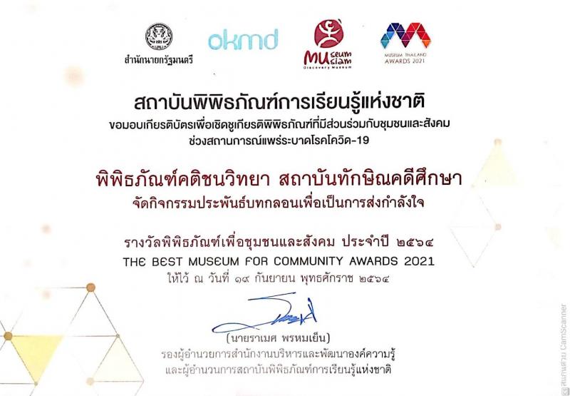 สถาบันทักษิณคดีศึกษาได้รับเกียรติบัตรรางวัลเชิดชูเกียรติพิพิธภัณฑ์...