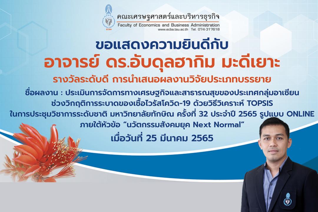 มหาวิทยาลัยทักษิณ ขอแสดงความยินดีกับ รองศาสตราจารย์ ดร.ธนูศักดิ์ ตาตุ คณบดีคณะสห...