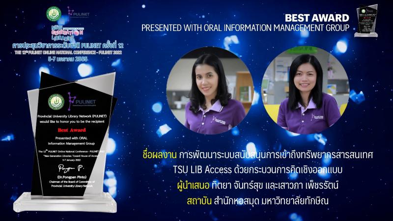 ขอแสดงความยินดี กับบุคลากรสำนักหอสมุดได้รับรางวัลระดับดีเด่น จากการนำเสนอผลงานวิ...
