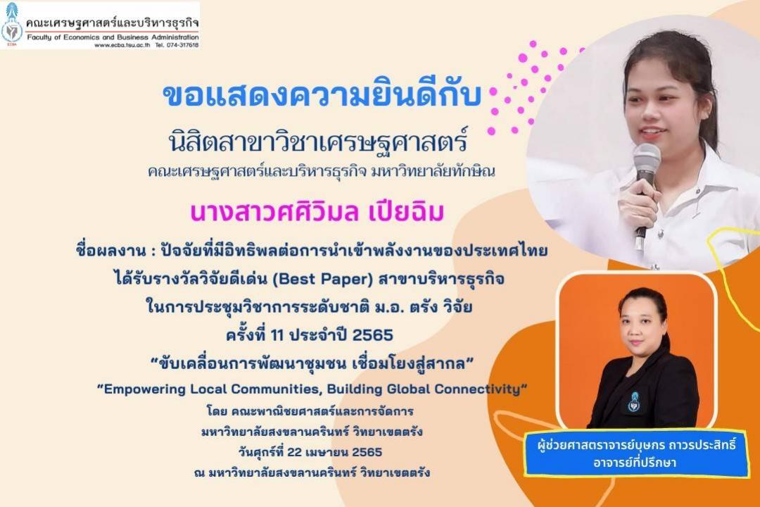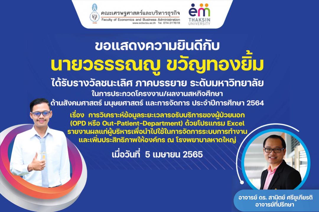 สุดปัง นิสิต ม.ทักษิณ ชนะเลิศการประกวดโอลิมปิกวิชาการเศรษฐศาสตร์และการเงินโลก ณ ...