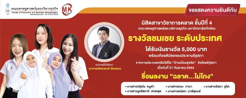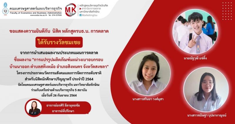 ขอแสดงความยินดี กับนิสิตการตลาดชั้นปีที่ 3 คณะเศรษฐศาสตร์และบริหารธุรกิจ ได้รับร...