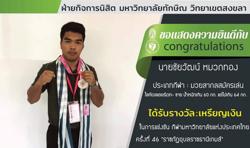 ม.ทักษิณ ขอแสดงความยินดี กับ 2 รางวัลจากการแข่งขันกีฬาเทนนิส ...